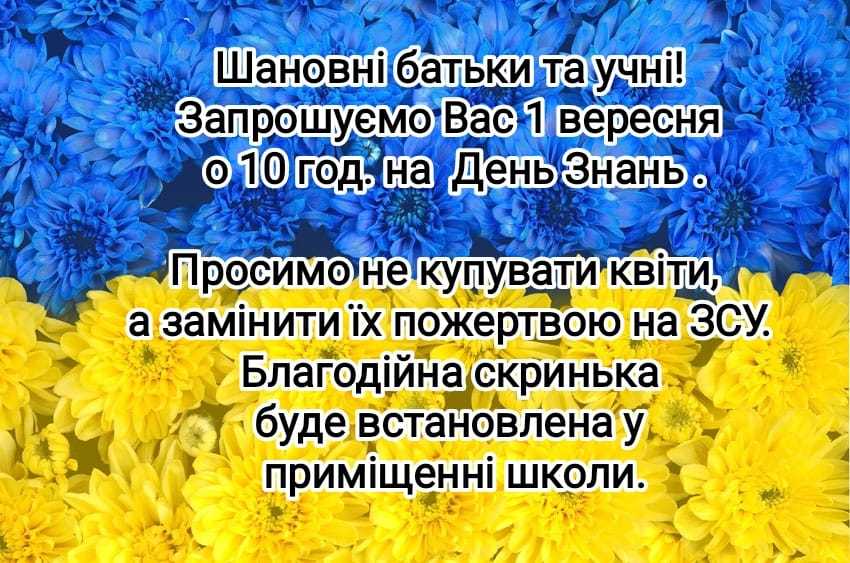 Вересень починається святом знань, просвіти, науки. Перший шкільний день, перший урок, перші вчителі. Наче все вперше – і слово, і музика, і дзвони душі. Щире спасибі нашим ЗСУ за можливість здобувати знання!