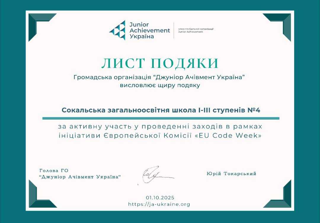 Педагогічний колектив Сокальськоі загальноосвітньої школи 4 висловлює підтримку вимогам профспілкових організацій щодо збереження та захисту прав працівників освіти під час формування державного бюджету на 2026 рік.