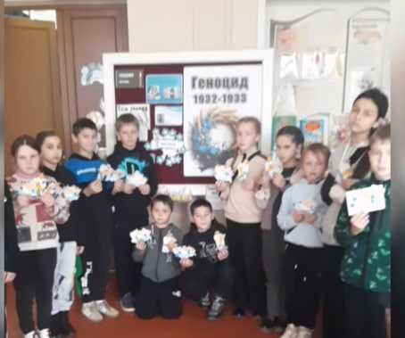 ...історія нас горем вчить, Щоб не забулось незабутнє. Бо там, де пам'ять не мовчить, Там щастям повниться майбутнє. ...Ніде нехай такого більш не буде! Хай день новий життя несе нове. Вклонімось низько сонцю й хлібу, люд ...