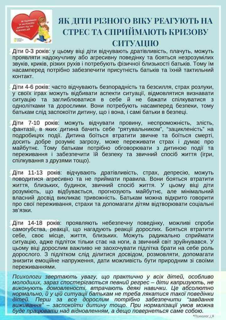 "Як діти різного віку реагують на стрес та приймають кризову ситуацію"