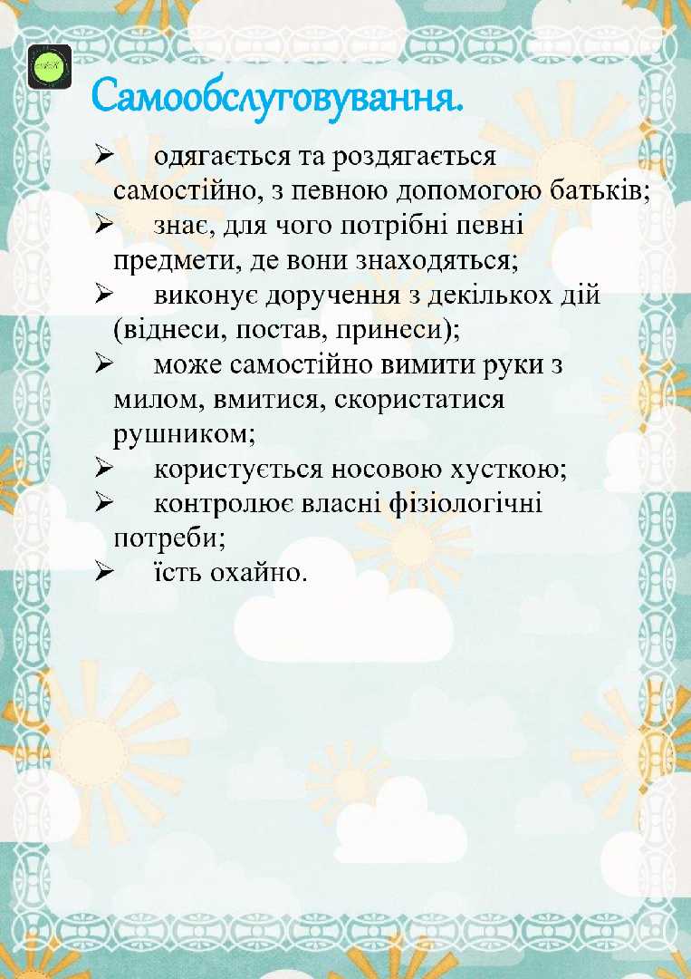 ЩО ПОВИННА ВМІТИ ДИТИНА У РАННЬОМУ ВІЦІ.