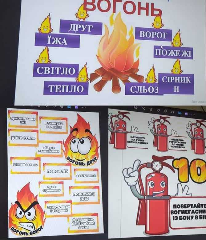 Вихователь підібрала цікаві факти про вогнегасник ,історію виникнення вогнегасника ,його призначення .Запропонувала переглянути мультфільм " Вогнегасник" ," Що робити під час пожежі".," Фіксики".ліпили з пластиліну пожежну машину та малювали веселі вогнегасники