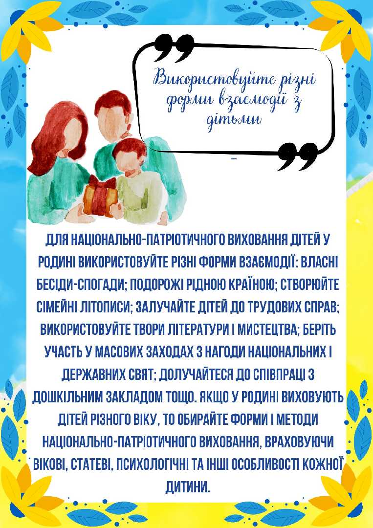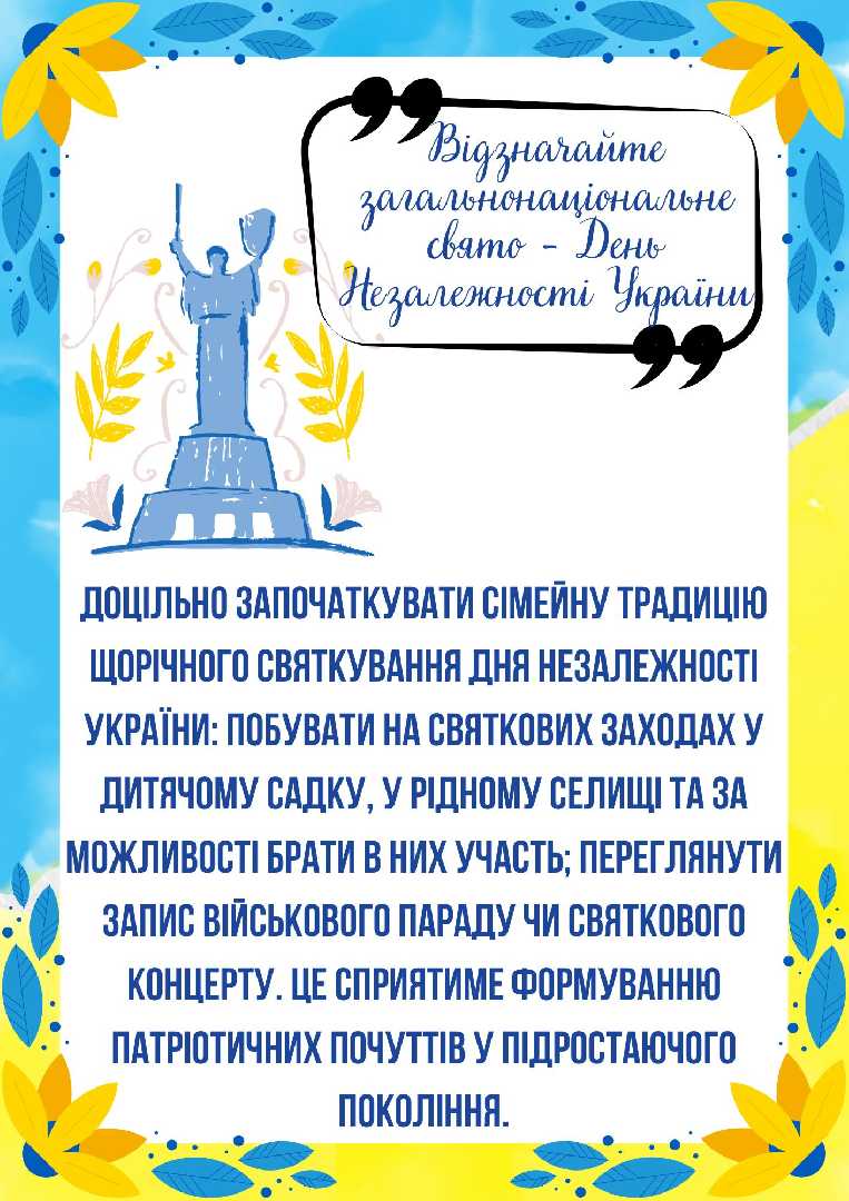 Поради батькам щодо Патріотичного виховання дошкільників