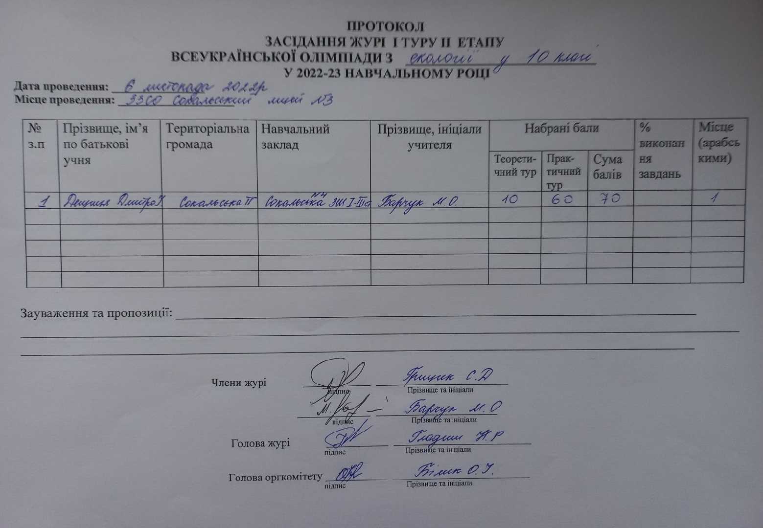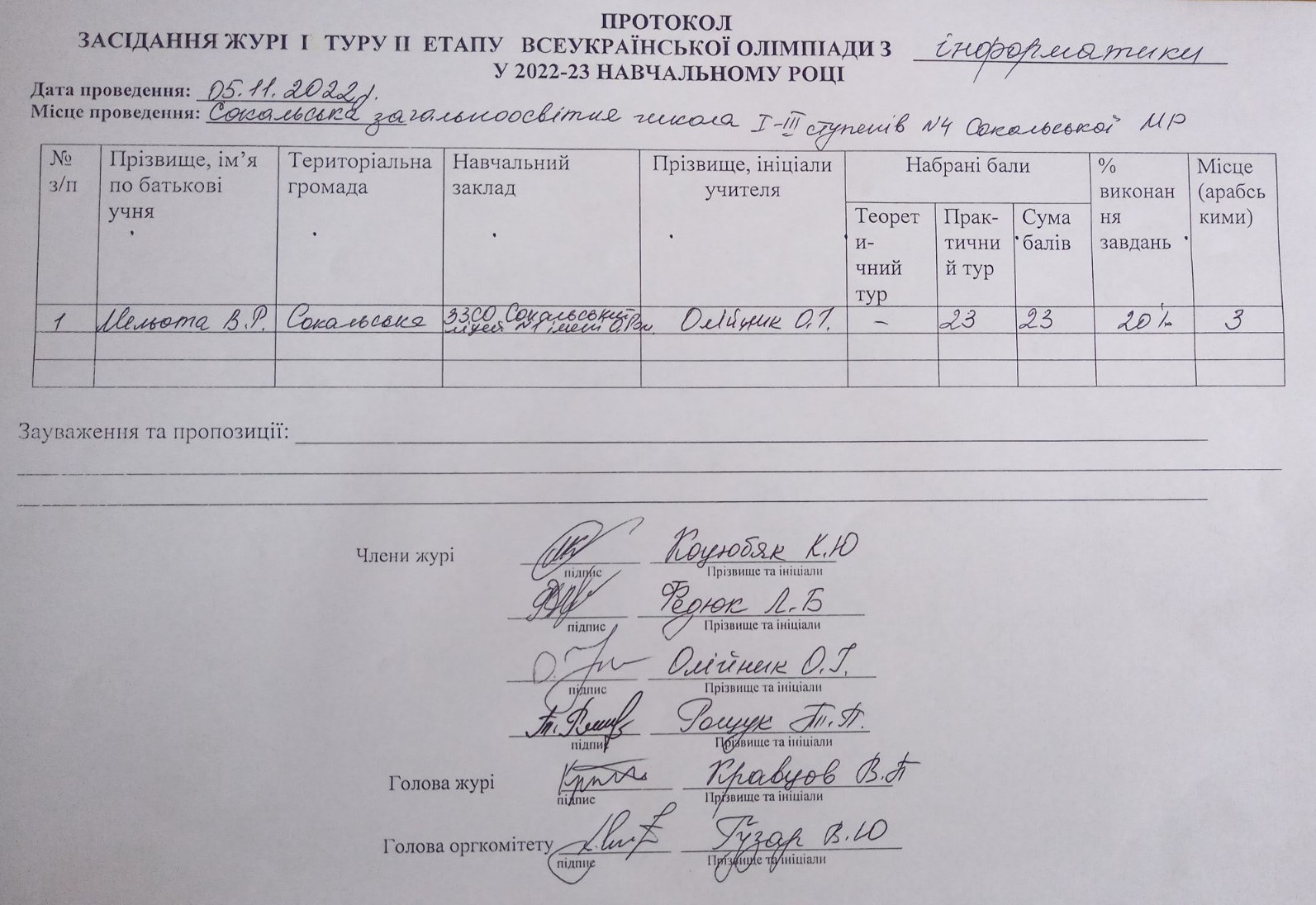 ПРОТОКОЛИ ОЛІМПІАД 2022