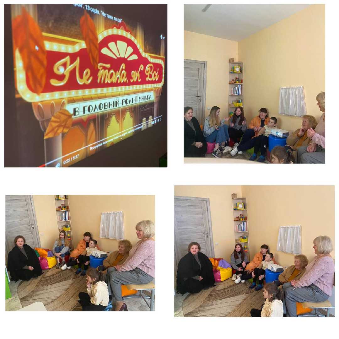 До всеуркаїнського дня психолога, фахівці ІРЦ Потоцька Наталія та Парніцька Марія провели кінотренінг. Кінотренінг є одним з інтерактивних методів роботи психолога з батьками, педагогами та дітьми. Це творчий процес самопізнання, внаслідок якого виникає можливість від переходу до свідомої корекції своїх дій. Разом із колективом та дітьми,ми переглянули мультфільм «Не така як всі». Цей мультфільм про важливе. Про те, що всі ми різні,унікальні, в мультфільмі є така фраза «Всі квіти різні, немає однакових». І незалежно ким ми є, ми маємо не боятися показувати свої сильні сторони , таланти та здібності. Цей мультфільм нас вчить, що кожна людина та дитина є унікальною . Необхідно докласти багато зусиль , щоб побачити сильні сторони в дітей, та будувати свою роботу так, щоб при корекції розвитку опиратися на сильні сторони, щоб дитина могла краще зрозуміти себе та свої сили.
