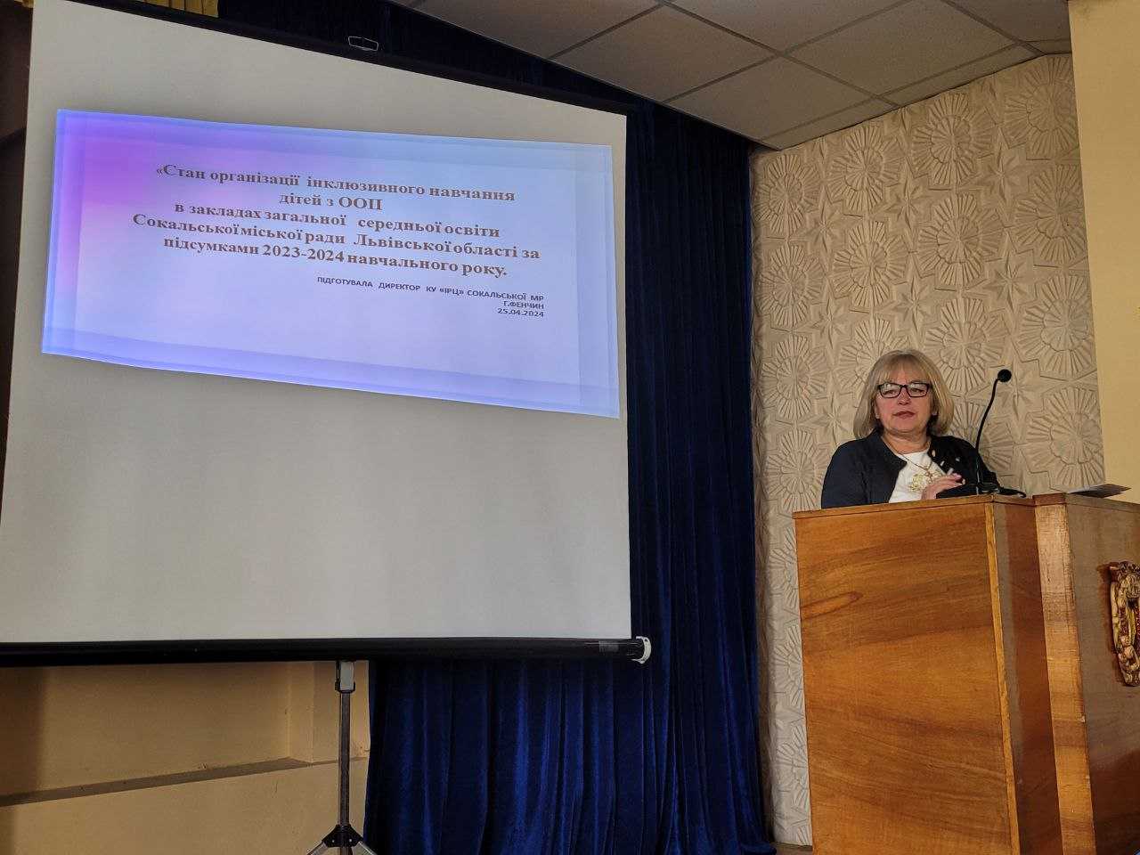 Директор інклюзивно-ресурсного центру Ганна Фенчин звернула увагу керівників закладів освіти на роль директорів в організації інклюзивного навчання у закладах загальної середньої освіти, критерії обстеження дітей з ООП, надала рекомендації щодо змін у веденні нормативно-правових документів, у тому числі критерій оцінювання та протоколів засідання команди психолого-педагогічного супроводу дитини з ООП. Також надала інформацію у розрізі закладів загальної середньої освіти Сокальської міської ради щодо кількості інклюзивних класів. У 2023-2024 навчальному році в громаді працює 42 таких класи, в яких навчається 51 дитина з ООП.