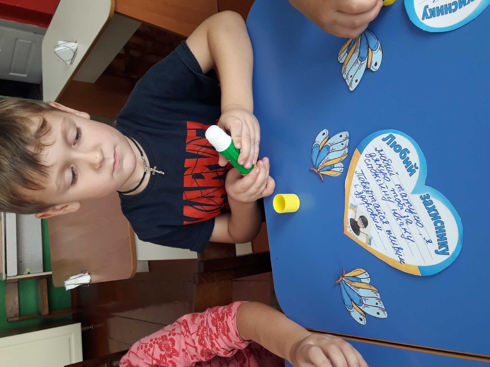 Діти нашого садочка із задоволенням виготовляли листівки та стали учасниками благодійної акції " Смак домашнього тепла" для захисників і захисниць України. Своїми думками і побажаннями підтримують бойовий дух героїв із вдячністю за наш спокій.