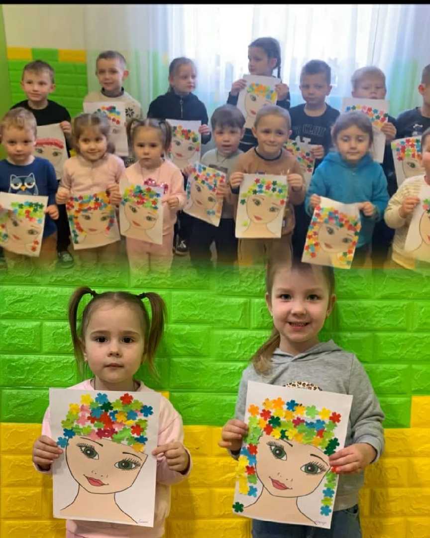 «Дівчина-весна» — яскрава аплікація, створена маленькими ручками. Кольорові квіти у волоссі символізують красу, тепло та пробудження природи навесні.