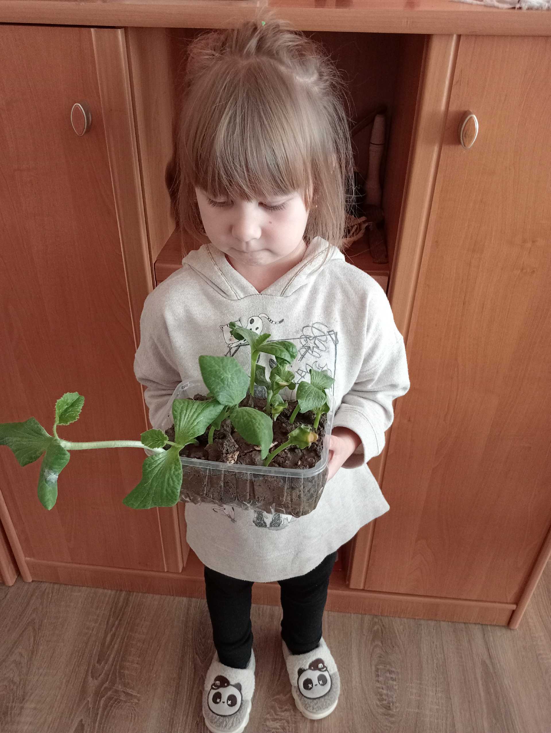 Дошкільнята отримали знання про те, що рослини- живі, їх поливають,саджають, вирощують,навчилися правильно називати трудові дії, діти отримали позитивні емоції