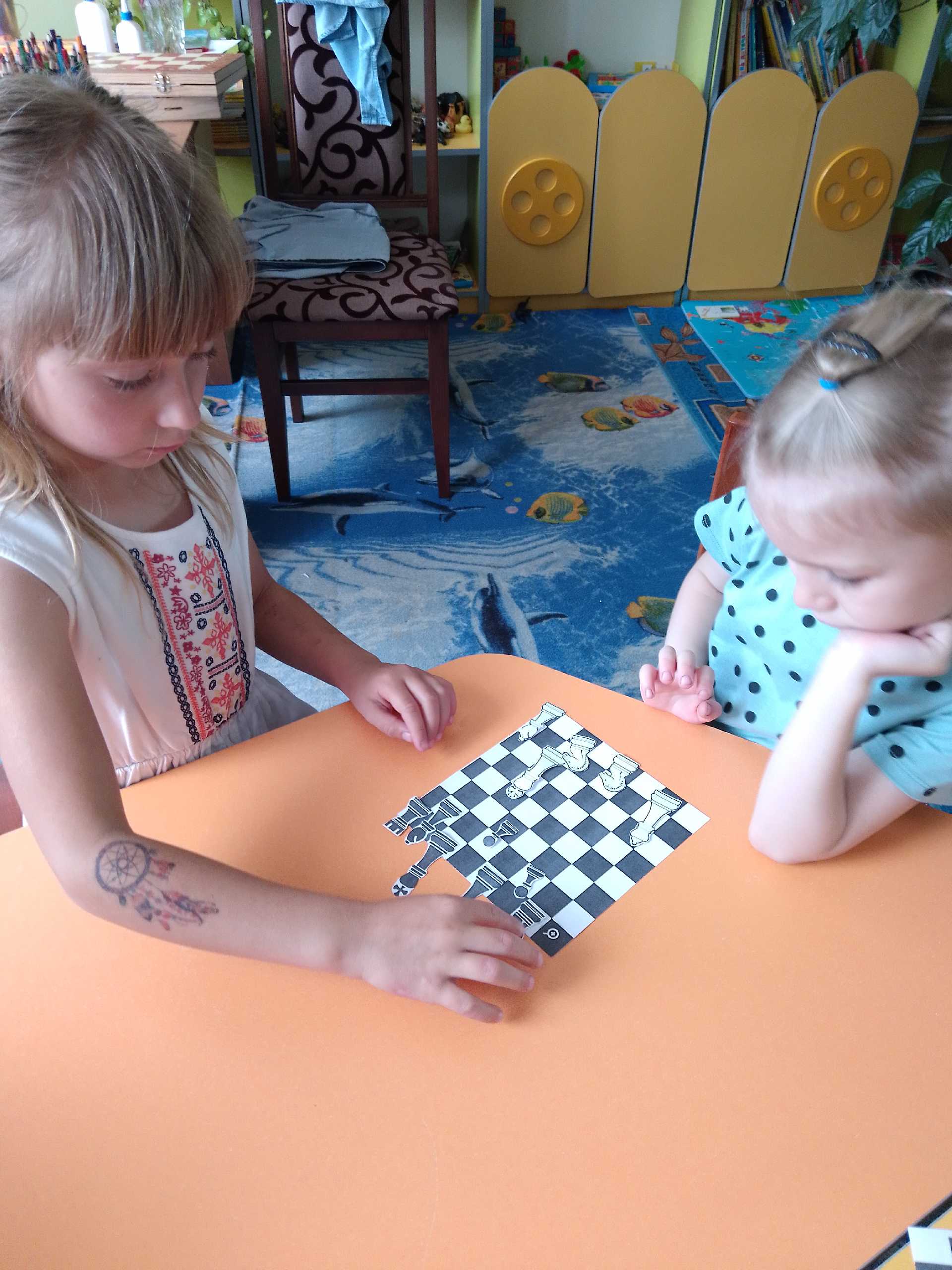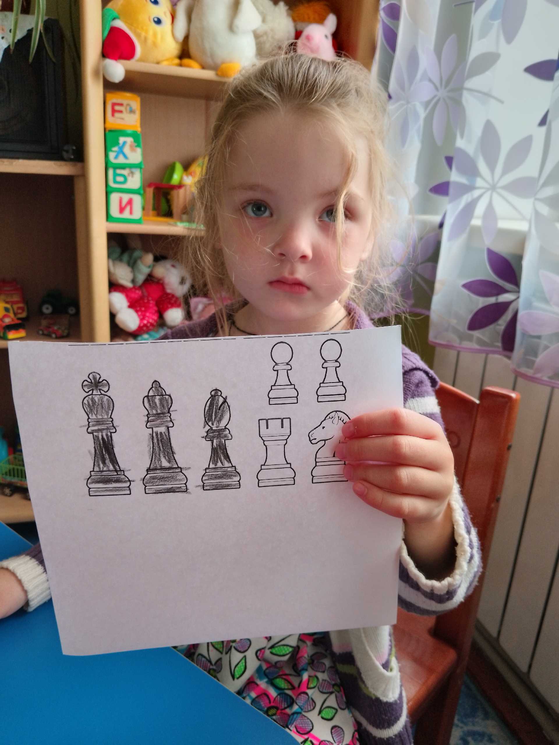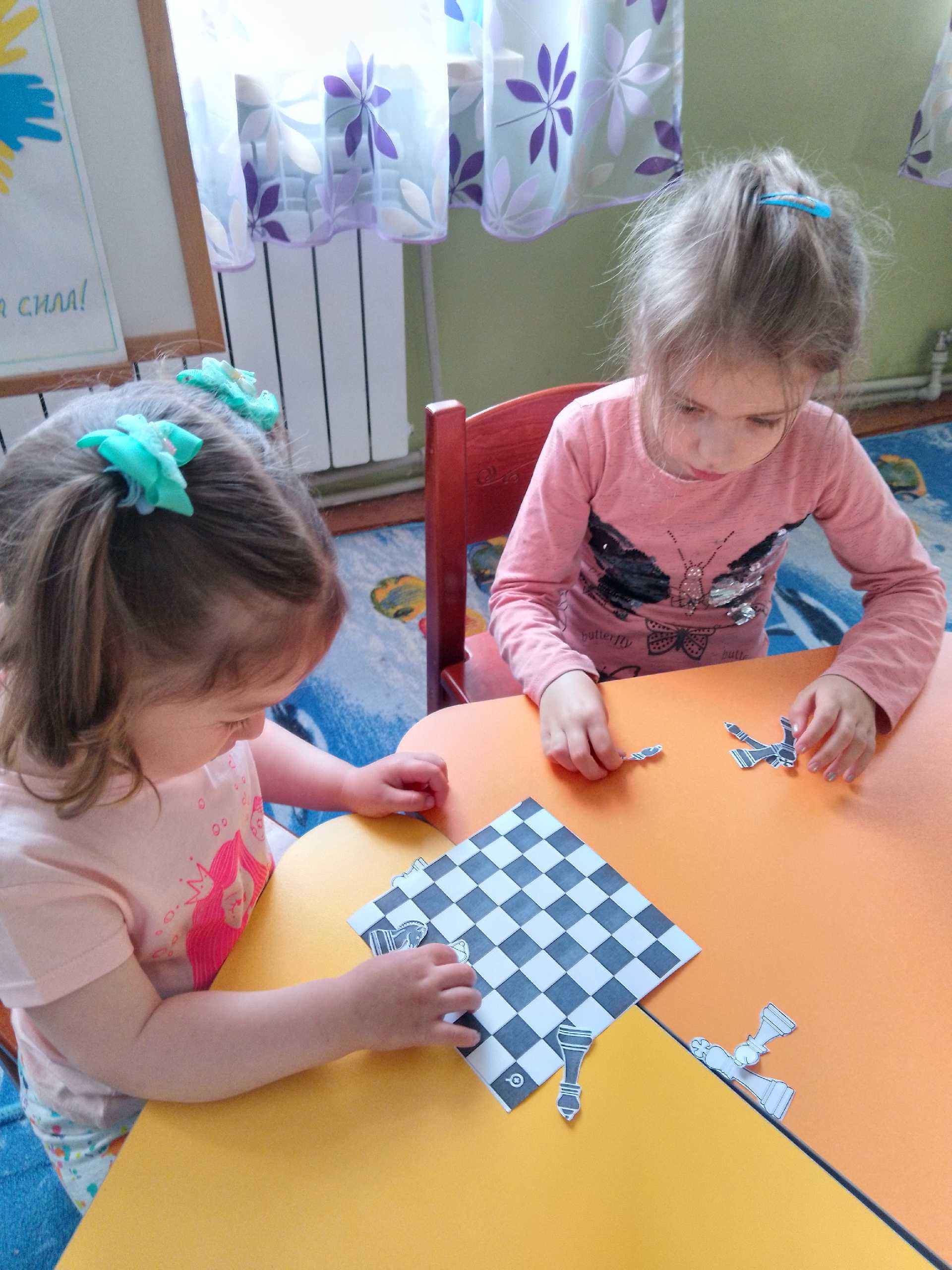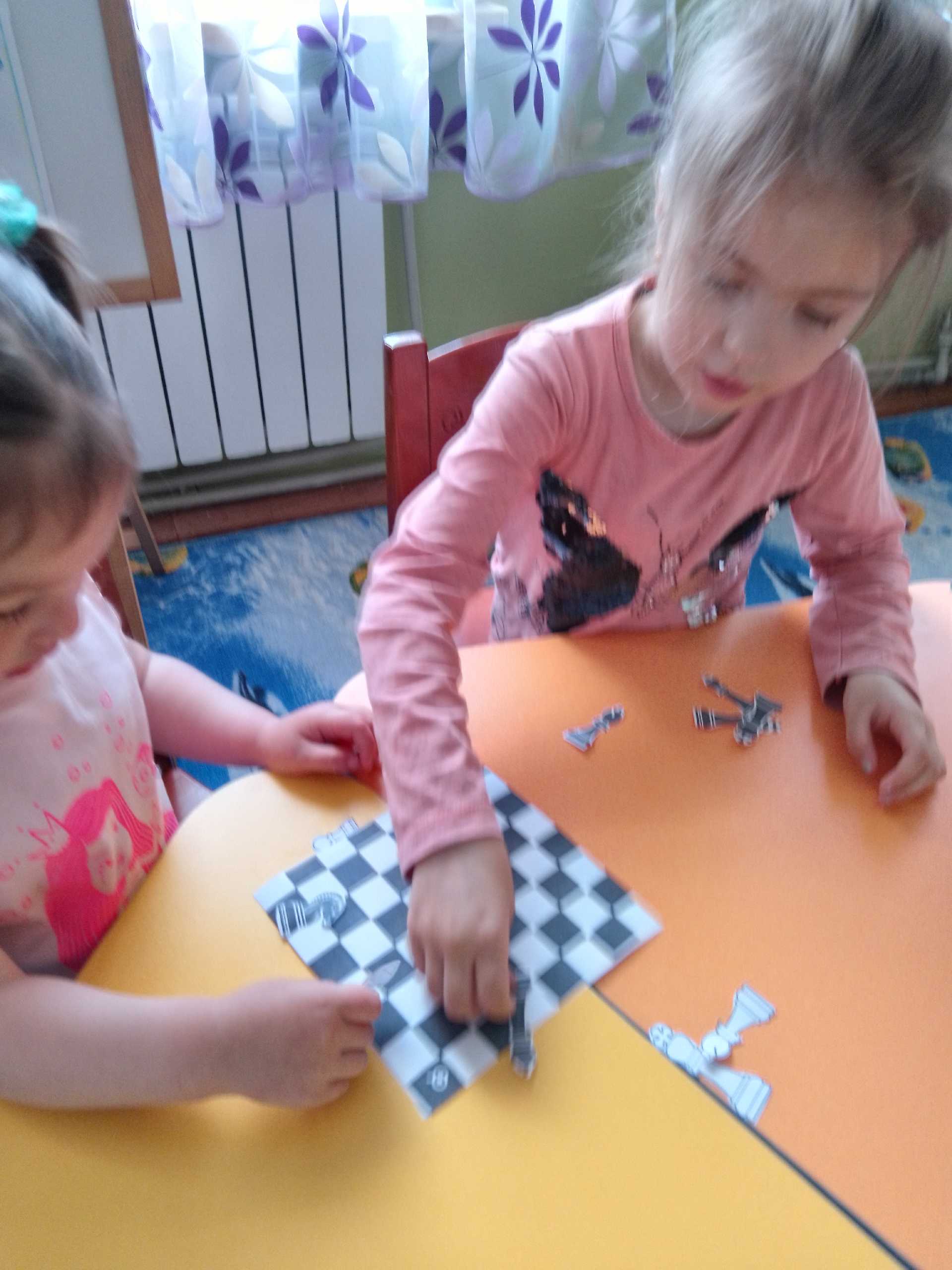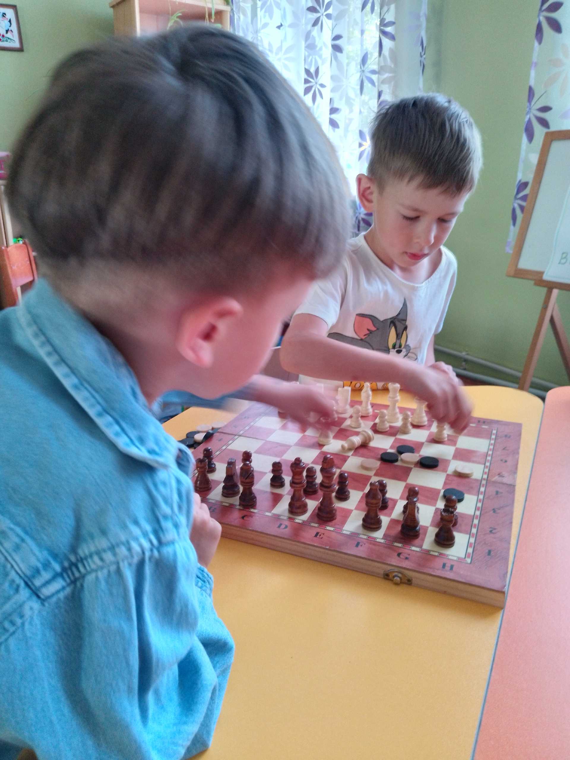 Сьогодні День шахів провели в садочку. Діти ознайомлені з цією грою на гуртку ,але цікаво пограли в шахи та зробили з паперу свої дошки чорно- білі. Розфарбували фігури та вивчили вірш про шахмати