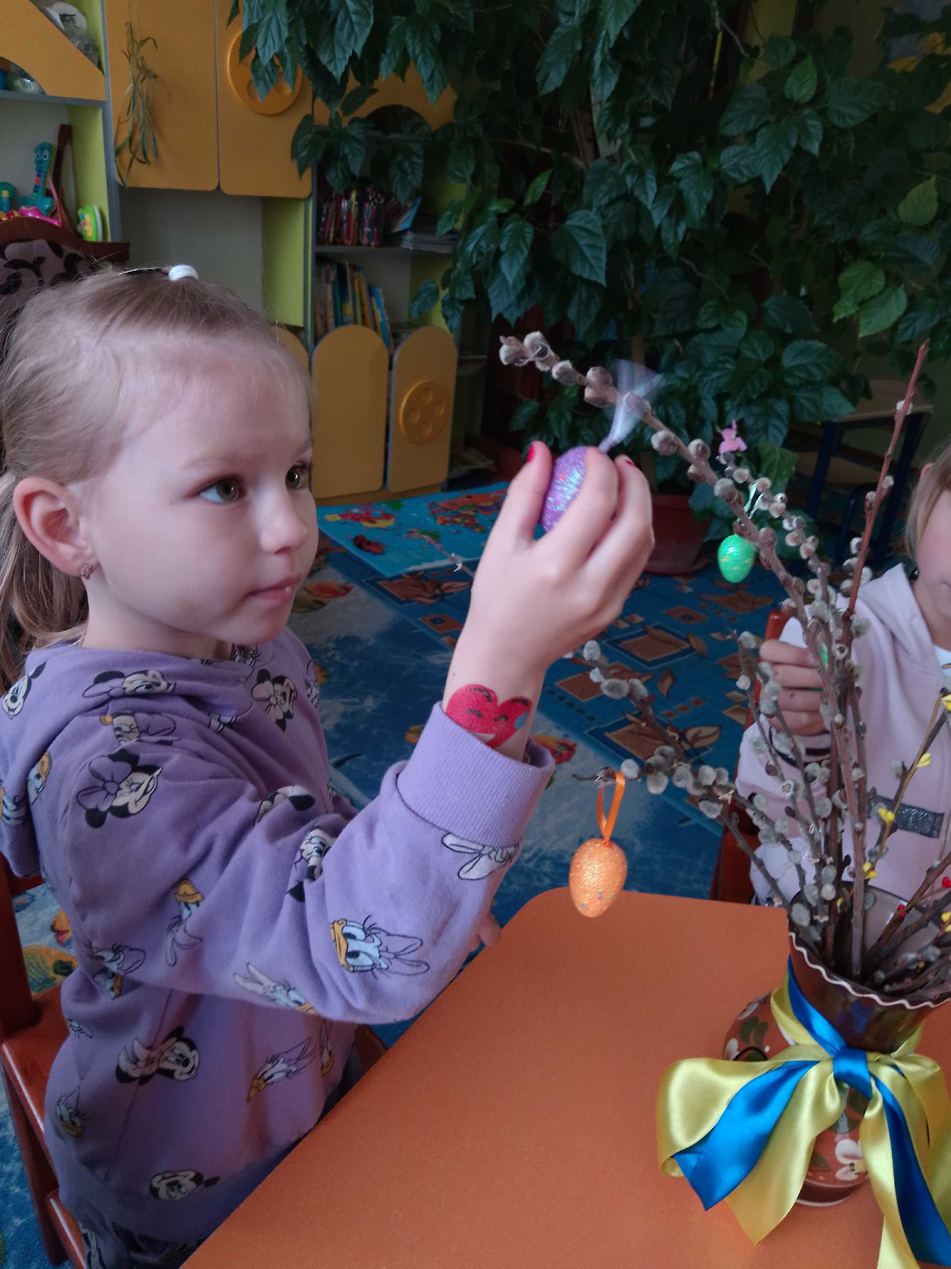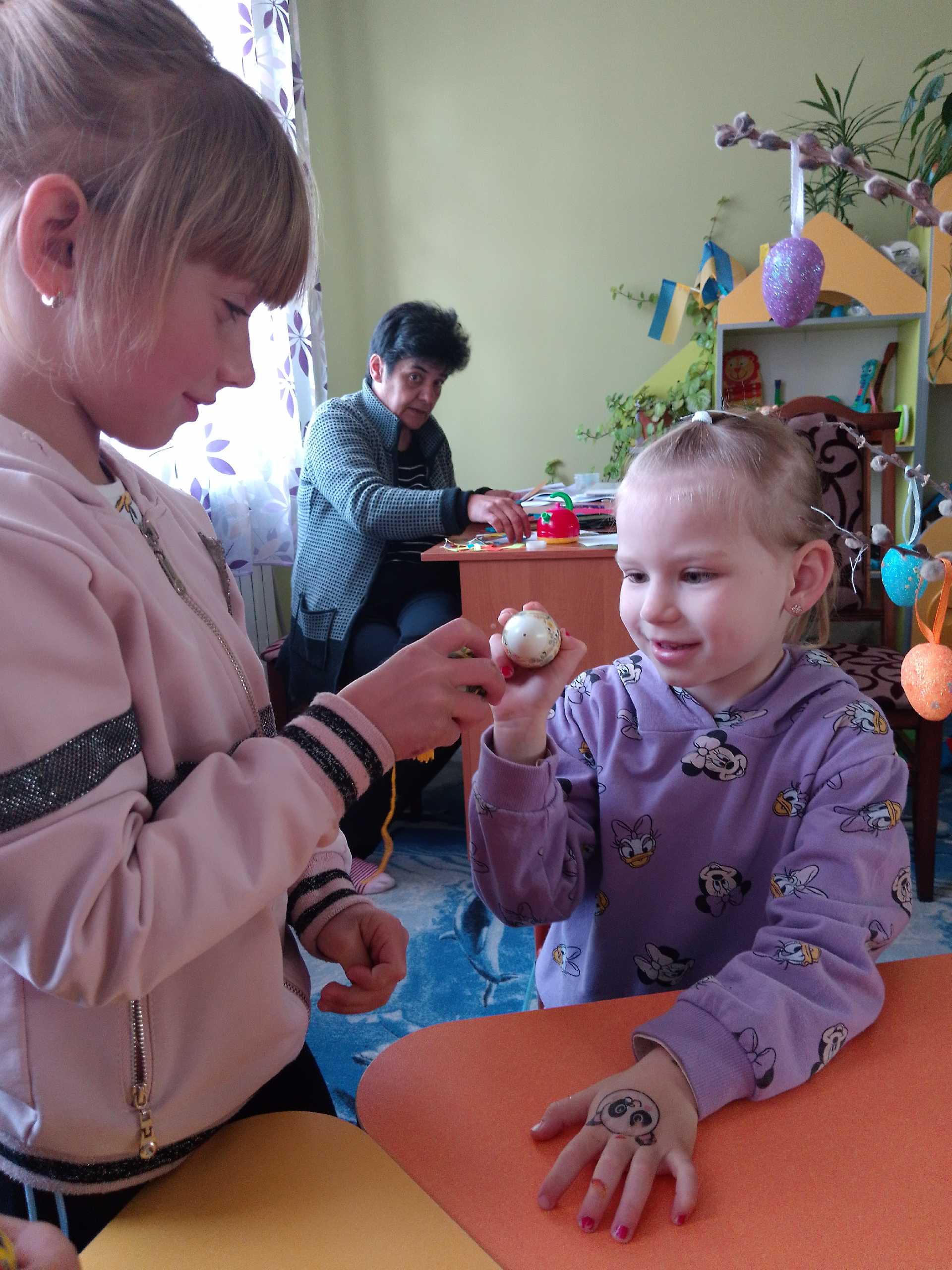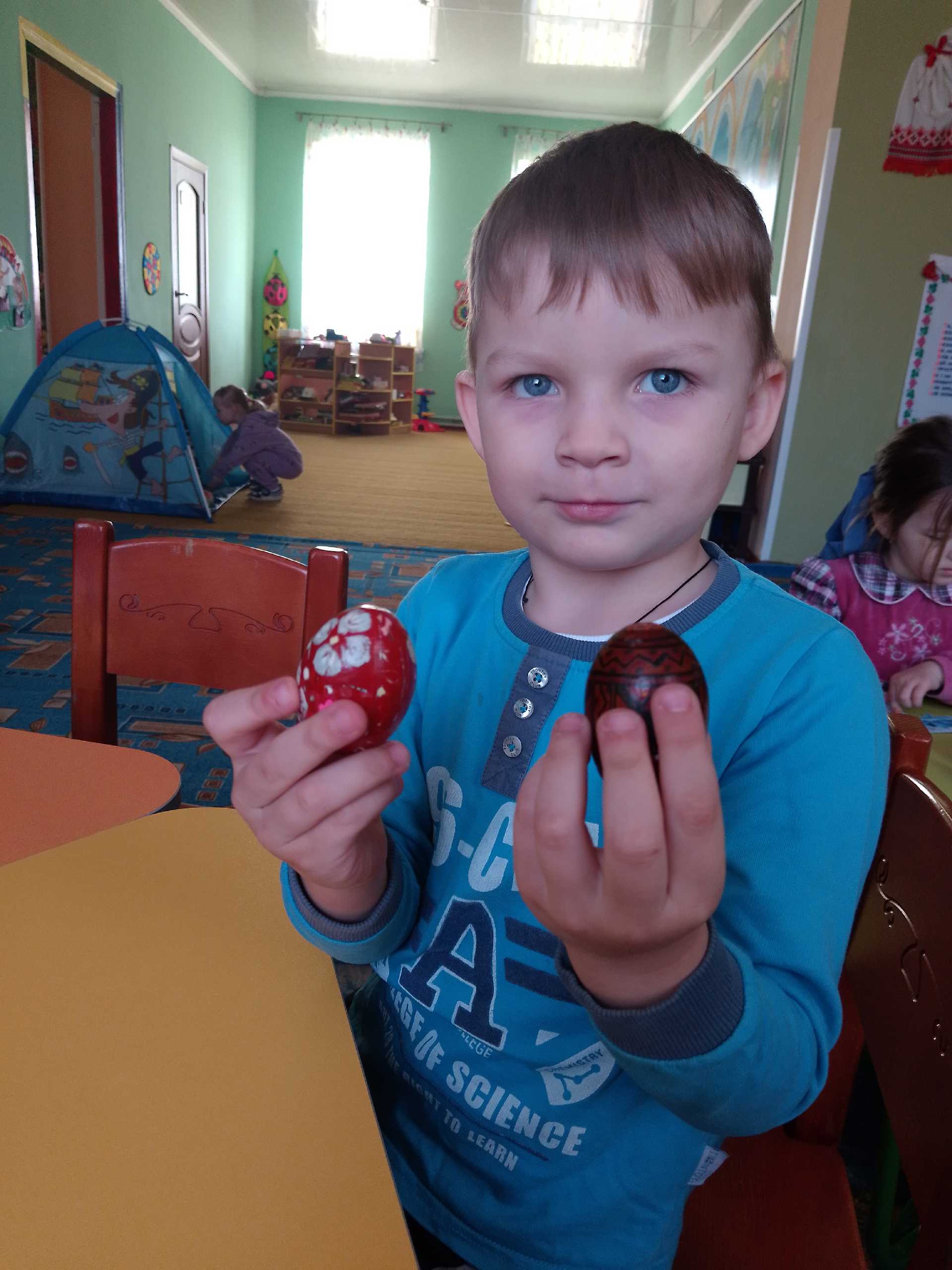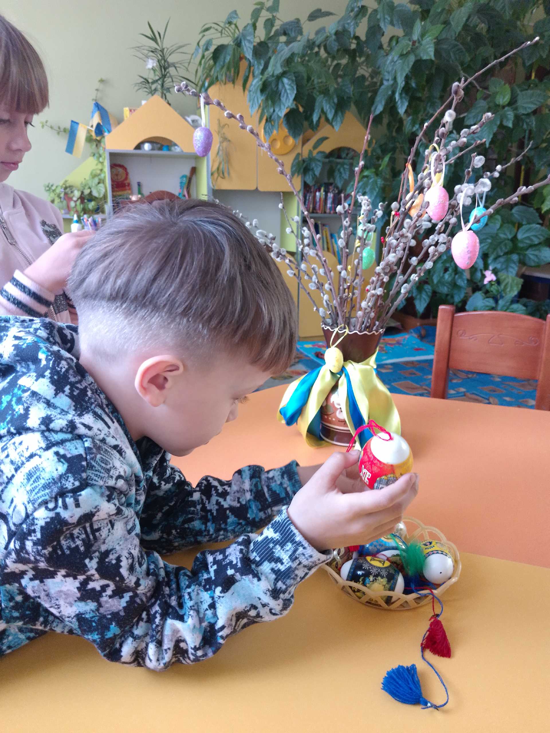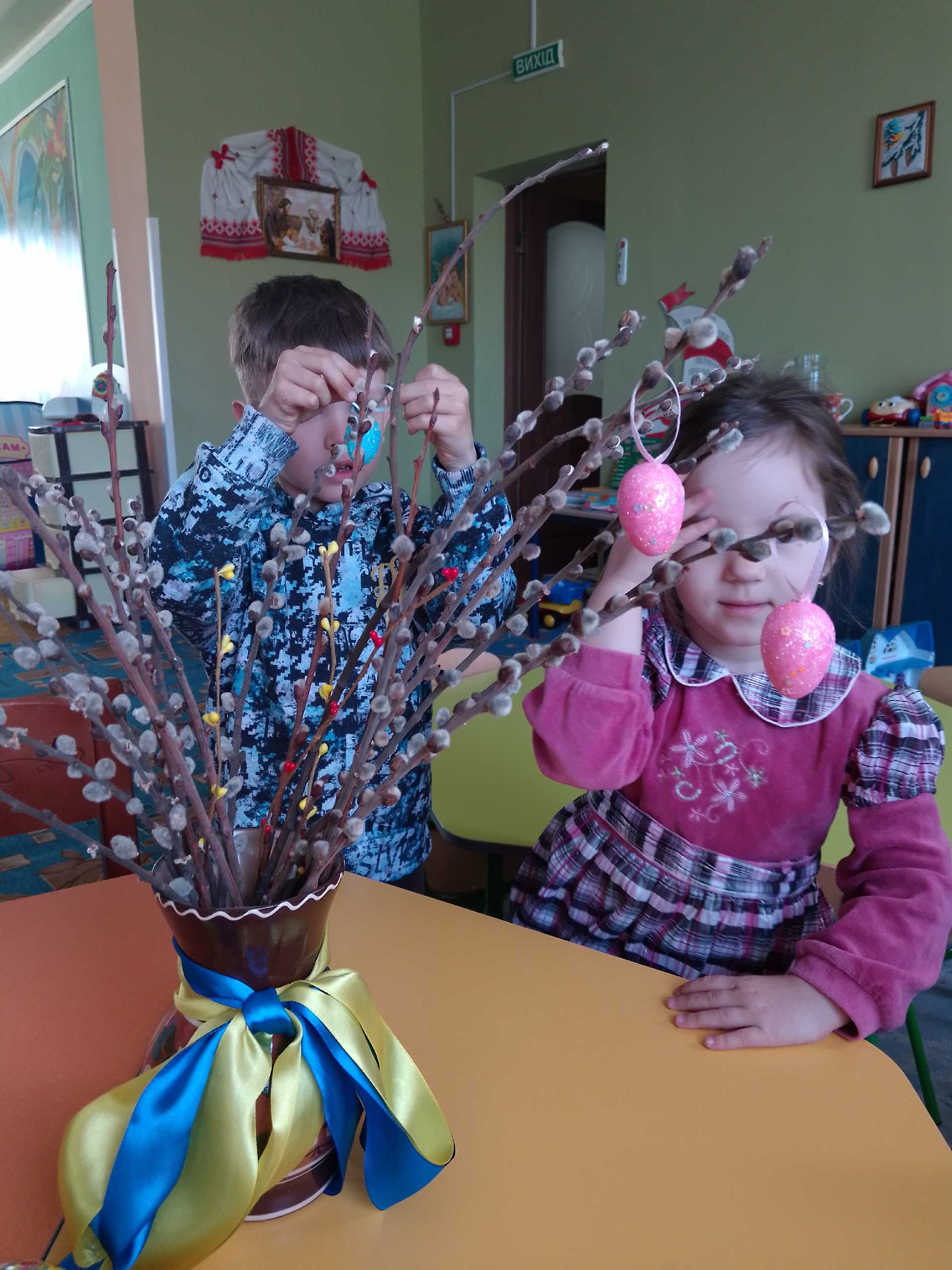 Вербова гілочка осв*ячена - тепер готуємося до Великодня. Розглядали писанки ,крашанки , прикрашали вербові гілочки.