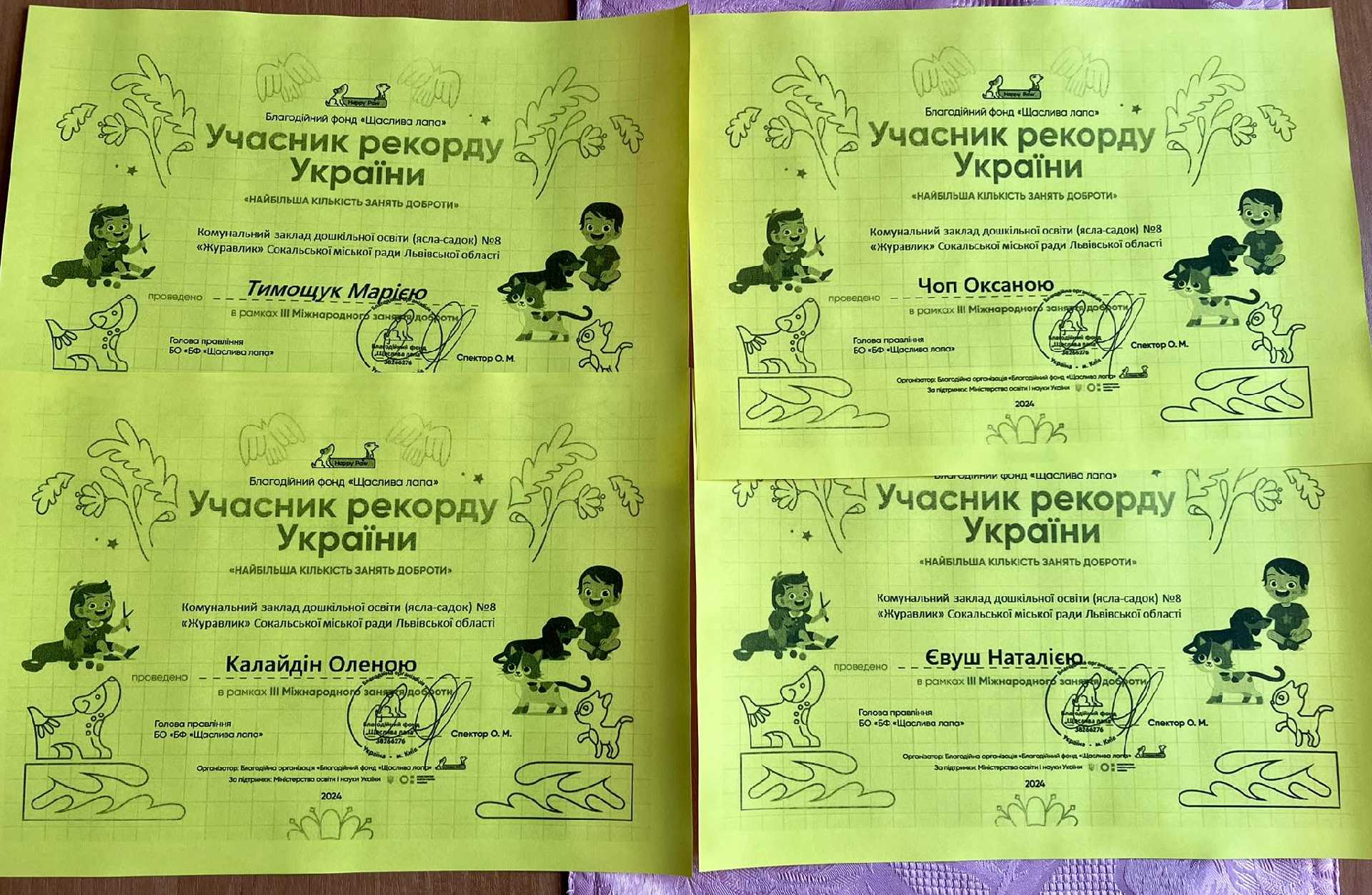 Діти та педагоги нашого закладу активно долучилися до занять. У підсумку, за наполегливість, доброту та небайдужість, Комунальний заклад дошкільної освіти (ясла – садок) №8 «Журавлик» отримав Сертифікат учасника учасник рекорду України «НАЙБІЛЬША КІЛЬКІСТЬ ЗАНЯТЬ ДОБРОТИ»