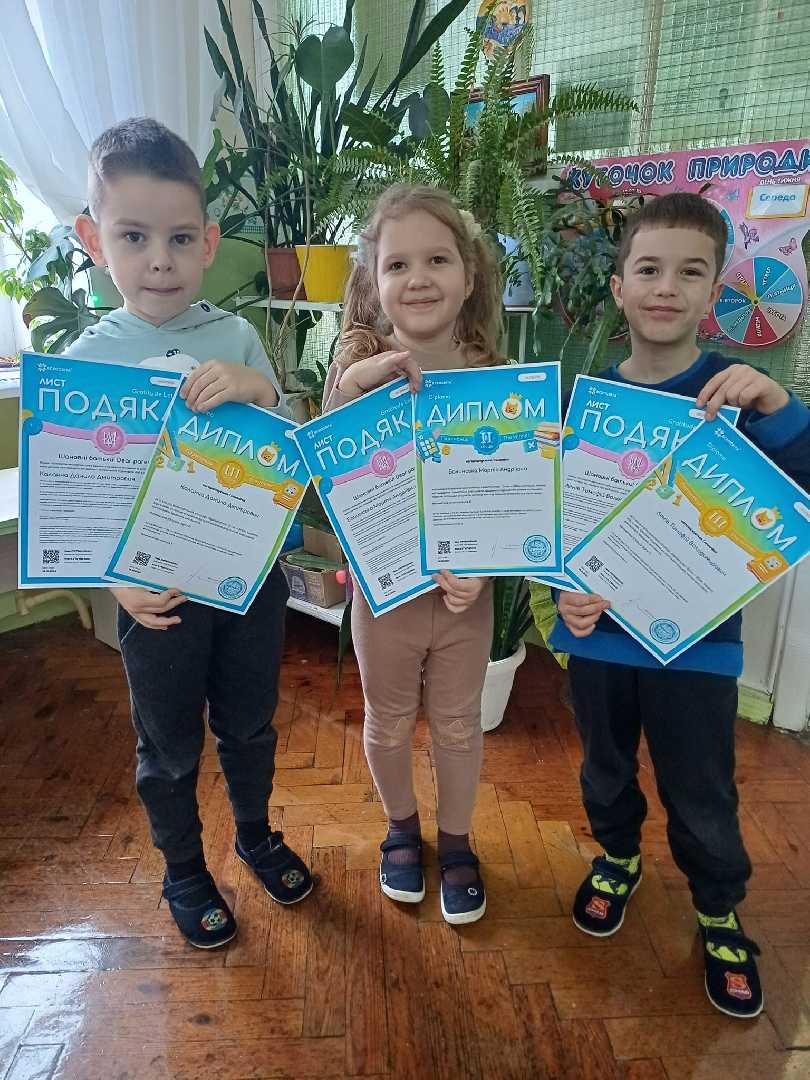 " Грева Даміана, Рубаха Єва, Хома Ірина взяли участь у цікавому конкурсі для дошкільнят https://vseosvita.ua/olympiad, і отримали свої відзнаки
