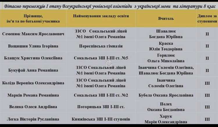 Принагідно скажу, що цього року вперше Олімпіада проводилась серед учнів чотирьох громад Шептицького району.