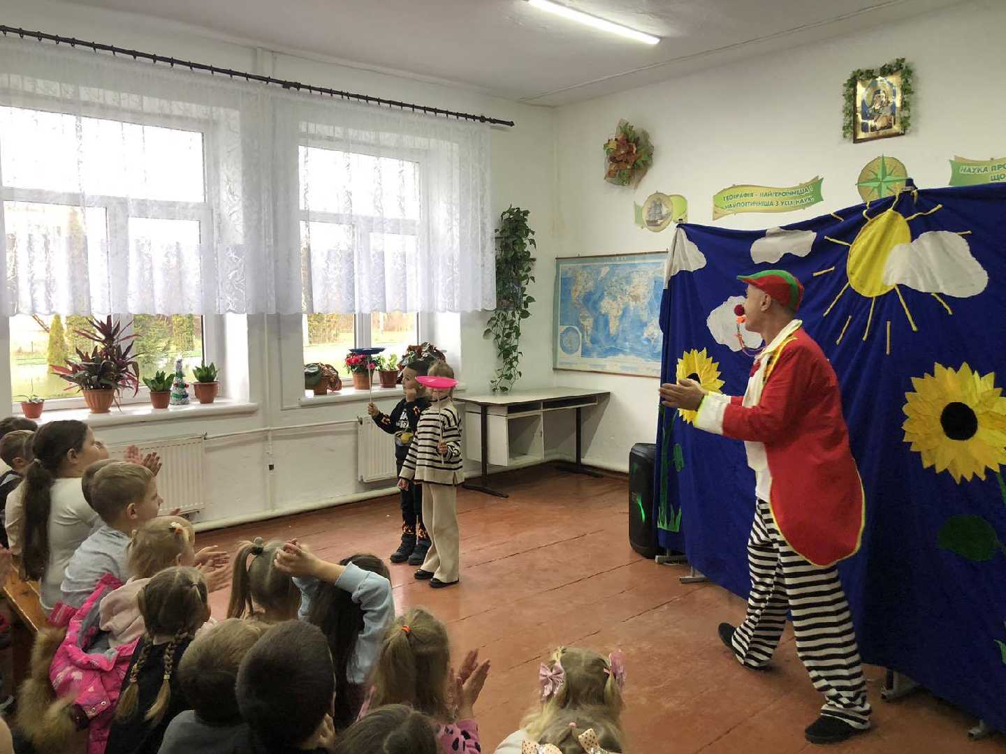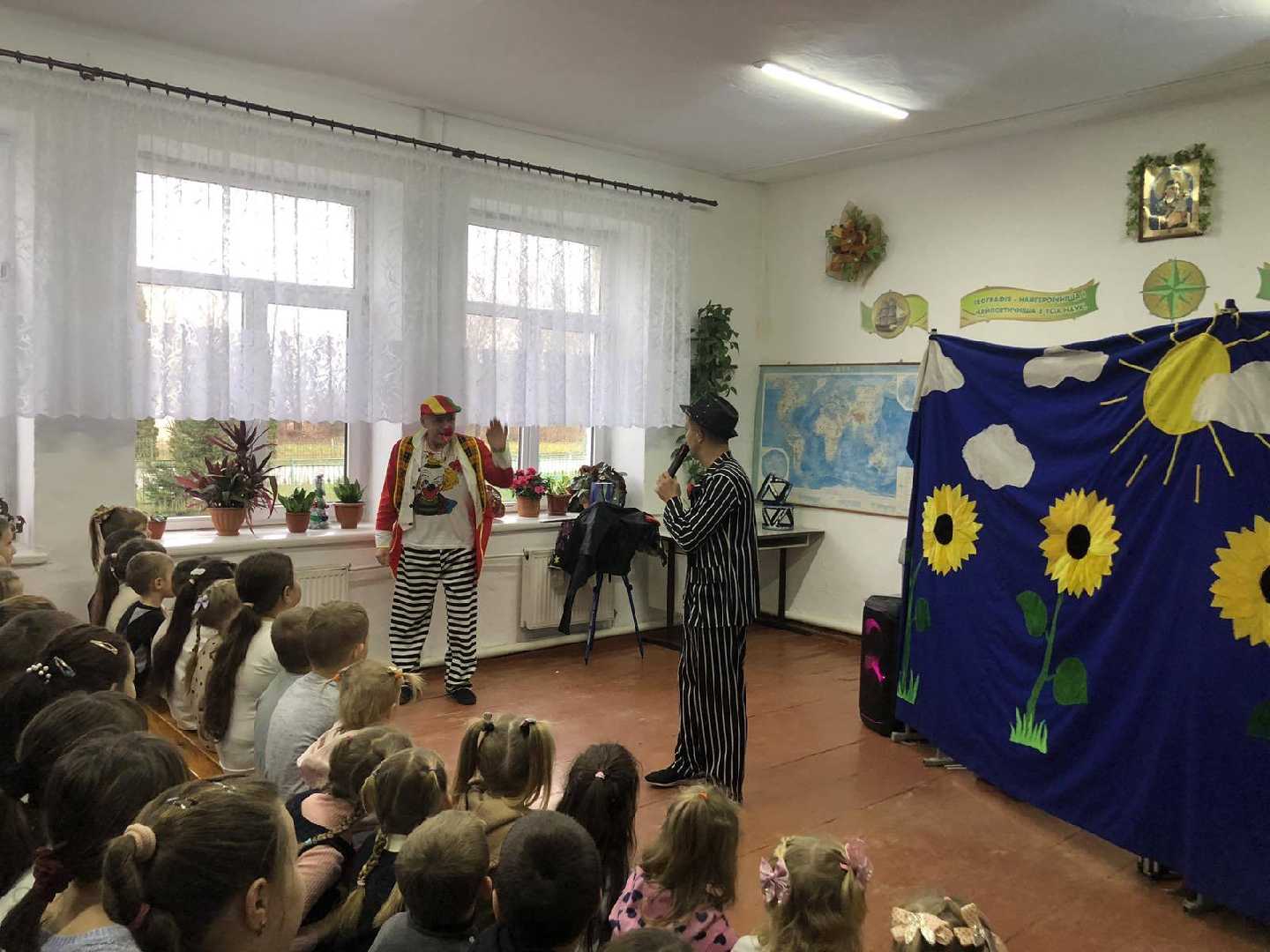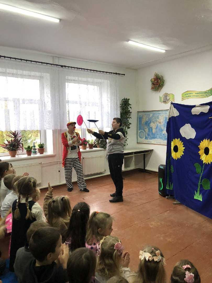 Сьогодні до нас завітав справжній цирк, який подарував учням море радості, сміху та здивування. Програма була насичена цікавими й захопливими номерами: веселий клоун розважав діток жартами, фокусник дивував магічними трюками, еквілібристи демонстрували неймовірну спритність і баланс, а робот став справжньою родзинкою виступу.