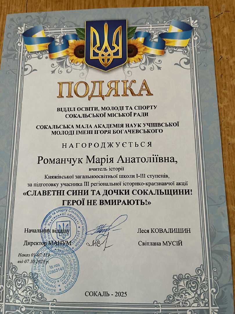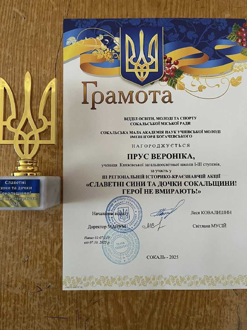 12 грудня 2025 року Княжівська загальноосвітня школа І–ІІІ ступенів долучилася до ІІІ-ї історико-краєзнавчої акції «Славетні сини та дочки Сокальщини! Герої не вмирають!».