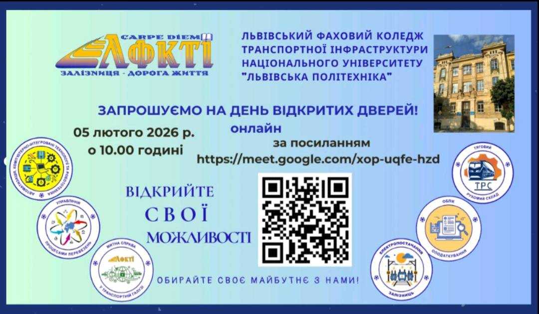 Сьогодні учні нашої школи долучилися до Дня відкритих дверей Львівського фахового коледжу транспортної інфраструктури НУ «Львівська політехніка», який відбувся в онлайн -форматі.