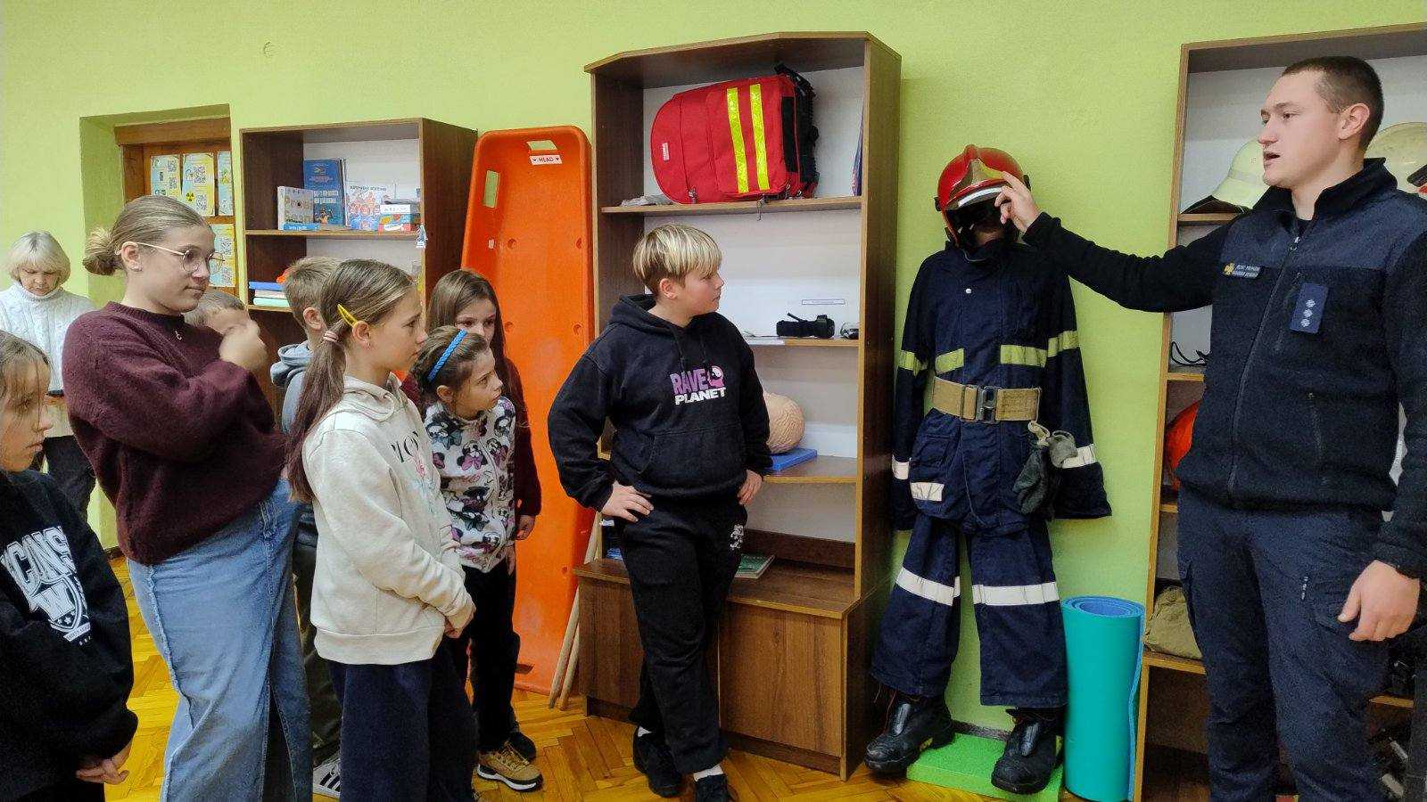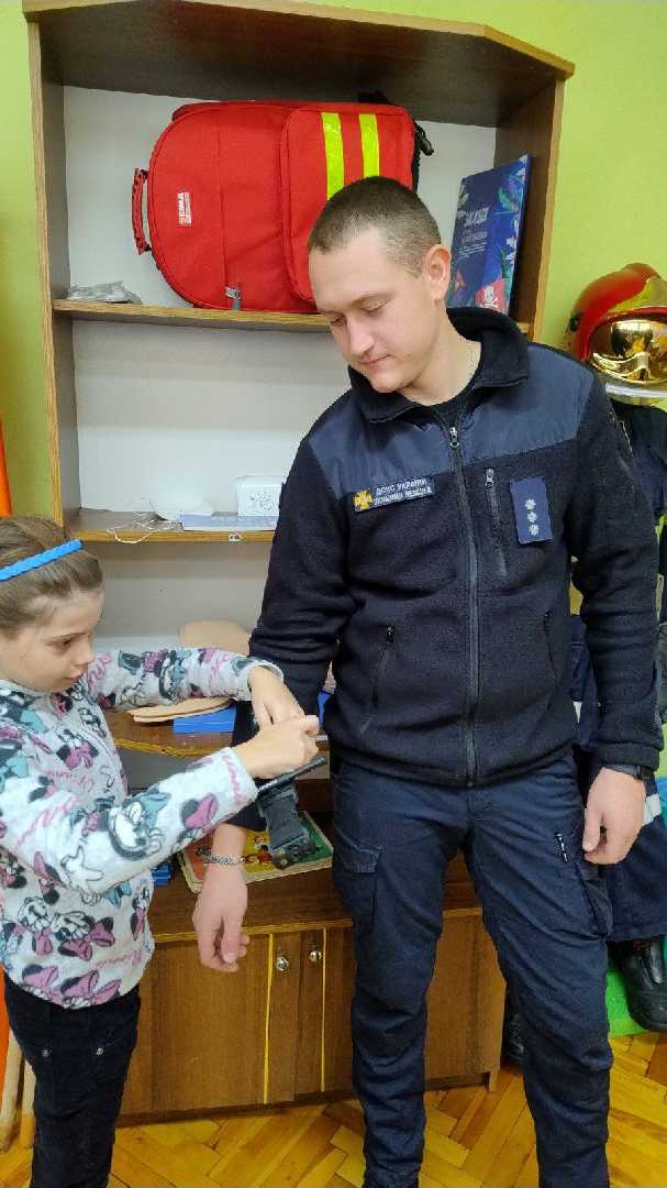 Діти не лише слухали, а й активно брали участь у практичних завданнях — приміряли захисне спорядження, тренувалися викликати службу порятунку та надавали допомогу «постраждалим».
