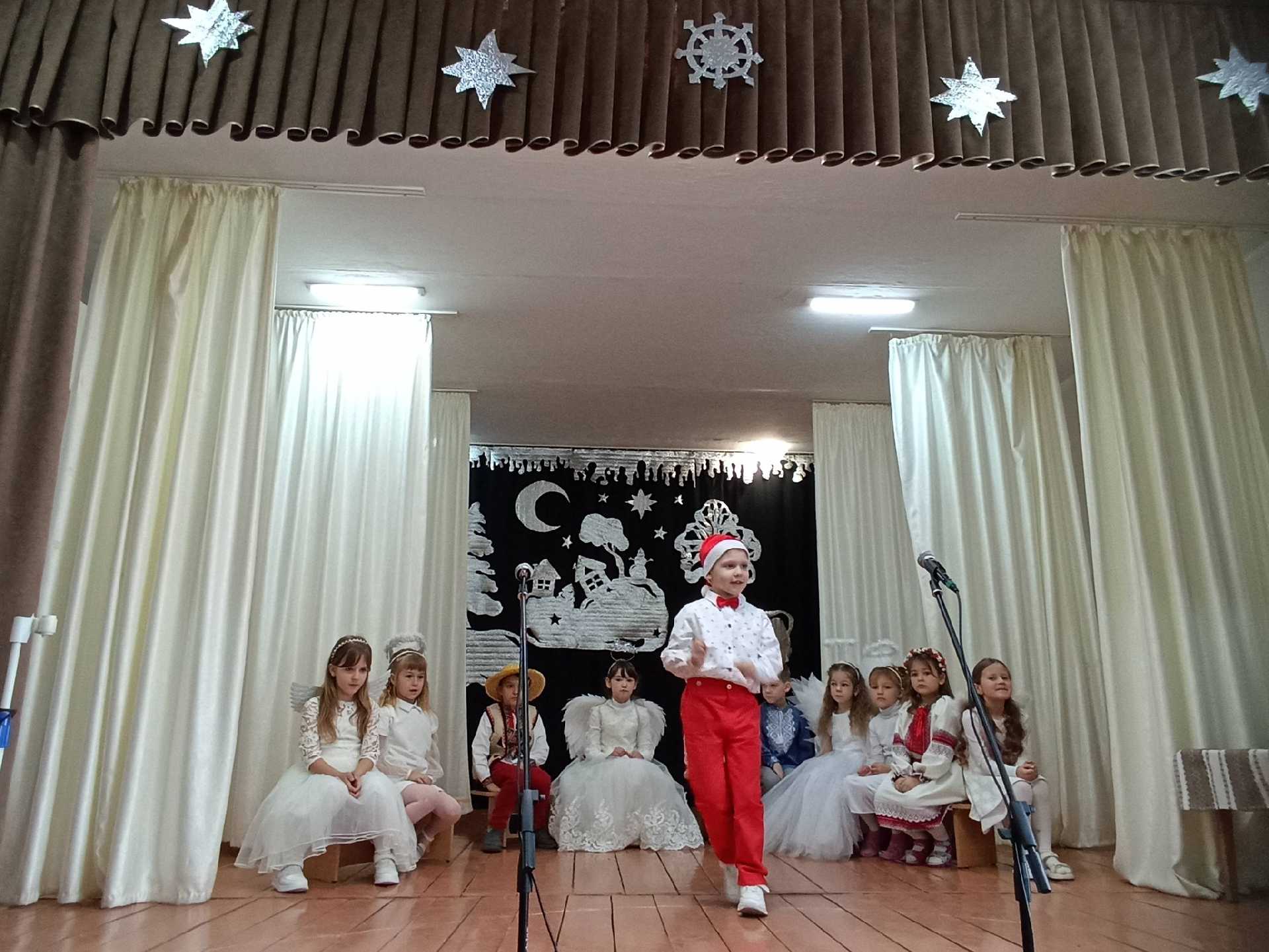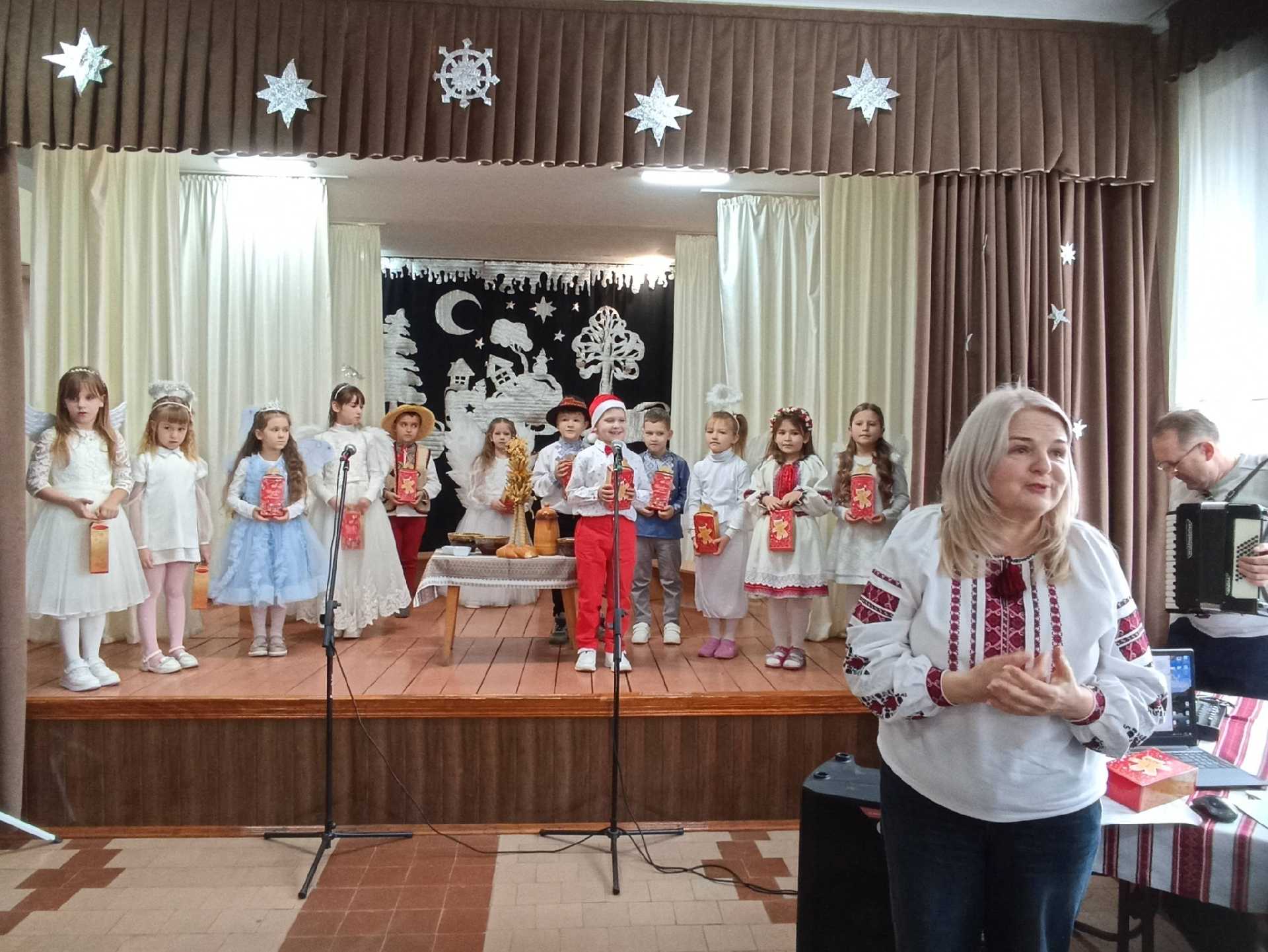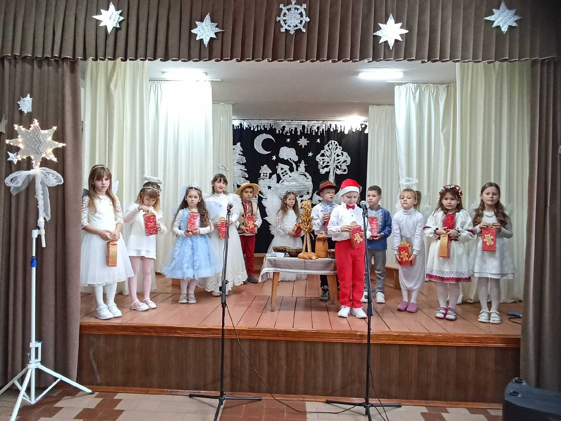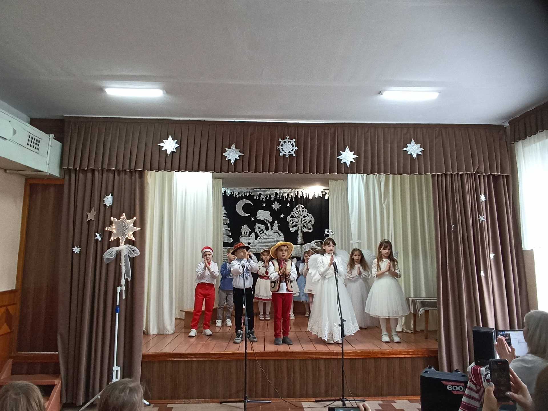 Наші маленькі першокласники під керівництвом Наталя Шевчук перетворилися на казкових героїв: янголятка, зірочки, різдвяники, пастушки. Вони так старанно готувалися — співали різдвяні колядки, розповідали віршики, танцювали й розігрували сценки з справжньої різдвяної казки.
