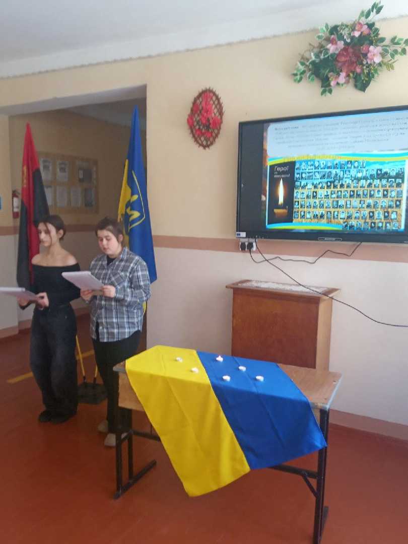 Пам’ятаємо. Шануємо. Не забудемо. У нашій школі відбулося віче пам’яті, присвячене Героям, які віддали своє життя за незалежність України. Учні та вчителі зібралися разом, щоб вшанувати подвиг тих, хто став на захист свободи т ...