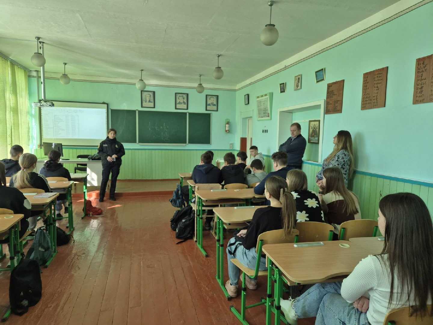 Інспектор Ірина Андріївна провела профілактичну бесіду з учнями на теми: " Як не стати жертвою вербування спецслужбами та громадянами росії? Як не втрапити на гачок «легких грошей» та не стати жертвою ворожої диверсії. Також обговорила з учнями поняття «булінгу», його види та форми, звернула увагу дітей на наслідки пропусків занять у школі без поважних причин та правила поведінки в освітньому закладі.