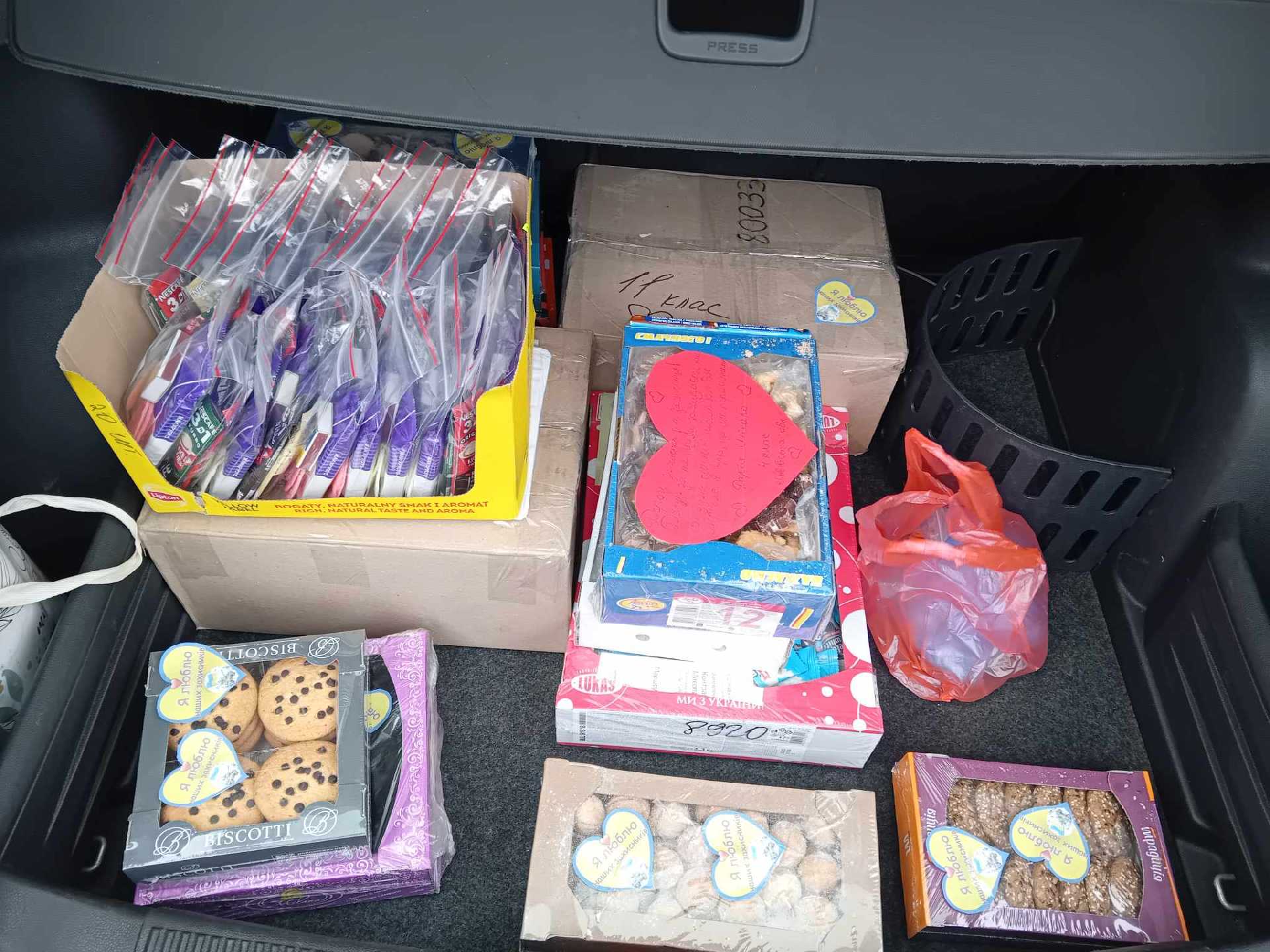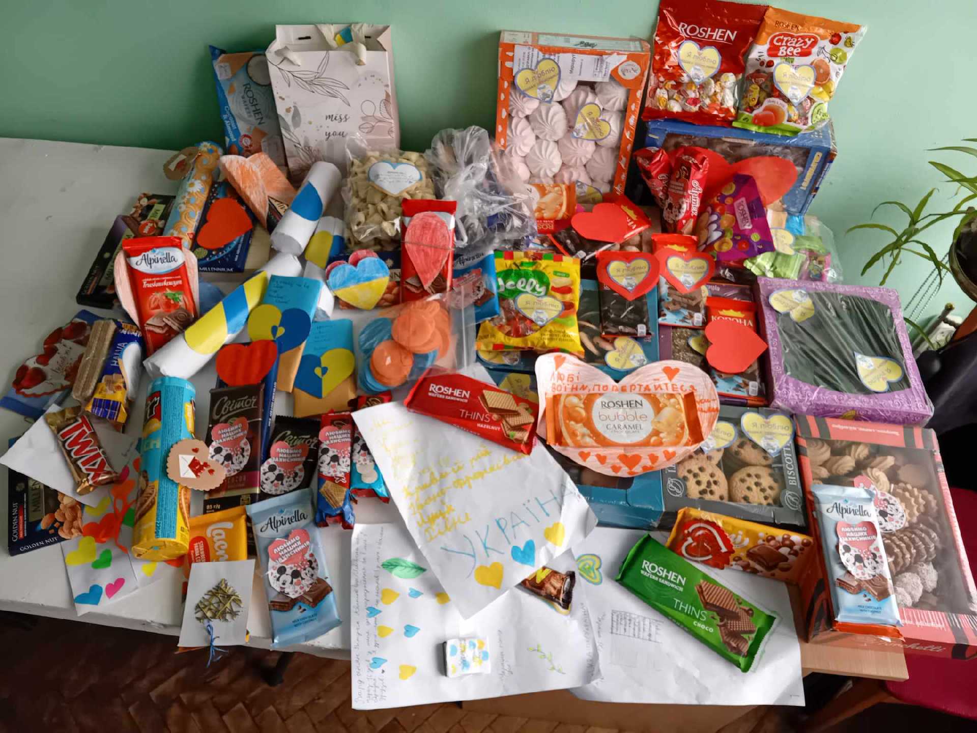 Юнаки та дівчата власноруч виготовили блакитно-жовті валентинки для захисників, записавши на них свої побажання. Паперові валентинки учні оздобили цукерками, печивом, тістечками.