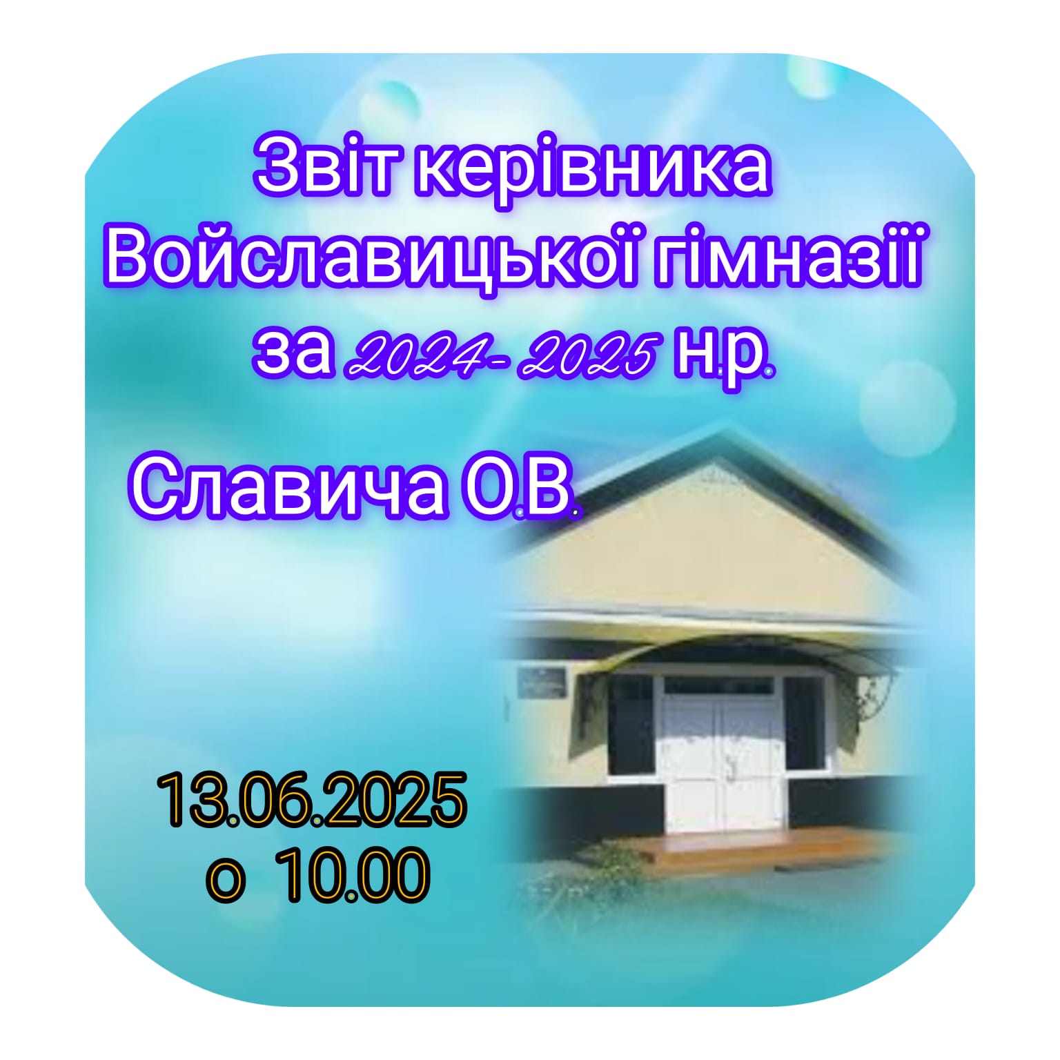 Звіт керівника Войславицької гімназії Славича О.В. відбудеться 13.06.2025 р. у приміщені закладу.