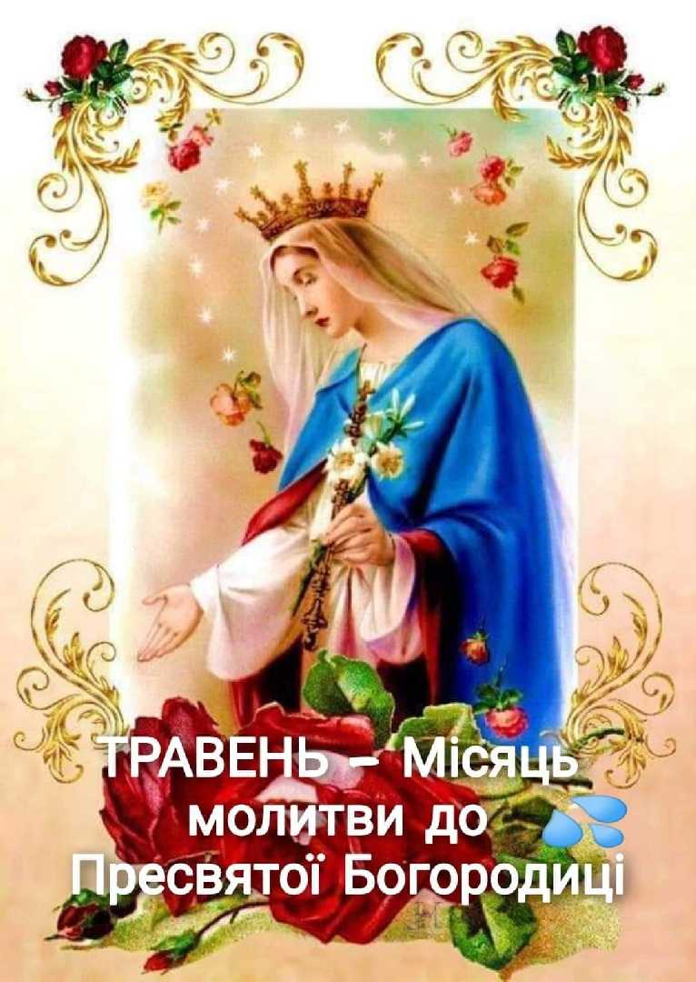 Церква присвячує місяць травень Пресвятій Богородиці Діві Марії. У цей час віруючі з особливим запалом підносять до Богородиці свої молитви. З давніх-давен маємо гарну традицію, коли в місяці травні, в особливий спосіб почитаємо Пресвяту Богородицю, молячись до неї молебні. В нашому народі називаємо цю практику «маївкою». Учні 5 класу підготували лінійку "Тебе благаємо , Пречиста, візьми нас всіх під свій Покров".