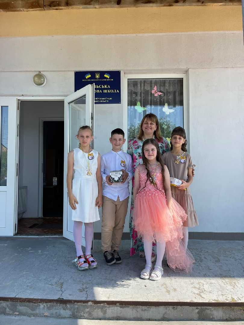 Останній дзвіночок в нашій школі пролунав для Богдана, Ілони, Ангеліни та Олі! Нехай подальше навчання буде для вас, дорогі дітки, легким та захопливим! Мирного вам неба! Здійснення усіх дитячих мрій!