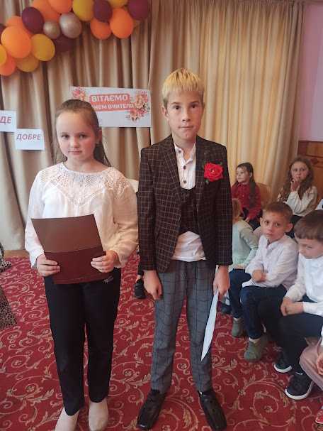 Вчителька 4 класу Ранця Л.С. та її вихованці провели у школі крутезний святковий захід з нагоди Дня Вчителя. Устим, Кароліна, Єлизавета та Олександра показали неабиякі акторські здібності. Щирість, любов та повага відчувалися в кожному слові.