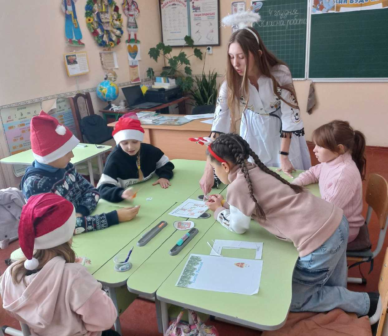 Сьогодні наші молодші школярі разом із ангелами поспішили на допомогу св. Миколаю у пошуках саней. Учні змогли подолати всі перешкоди, які траплялися на їхньому шляху, зібрали всі частинки саней для Миколая. Складали розсипані подарунки, співали, танцювали, шукали зачаровані сніжинки, прикрашали ялинку та розгадували чарівне послання. Саме ці маленькі, хоробрі серденька, згуртованість, любов та відвага врятували цьогорічну чарівну ніч. Миколай приїде до кожної дитини!)