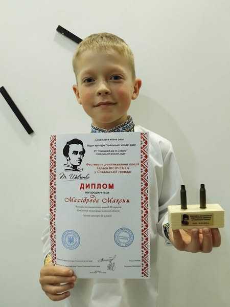 Вітаємо переможця Фестивалю декламування поезії Тараса Шевченка у Сокальській громаді Махіброду Максима, учня 3 класу.????