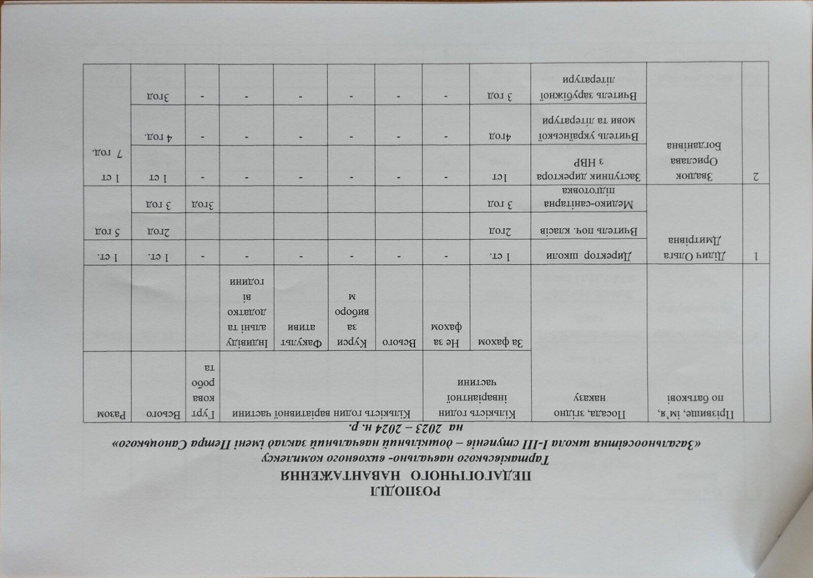 Розподіл педагогічного навантаження