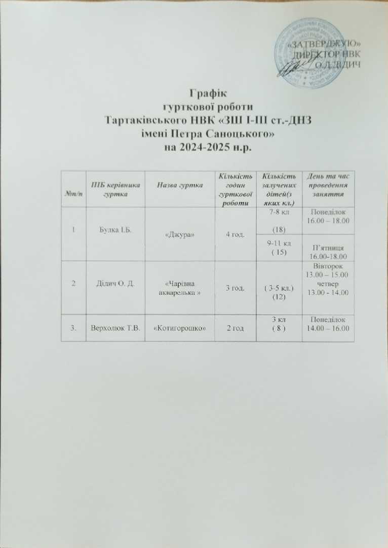 Графік гурткової роботи на 2025-2026 н.р.