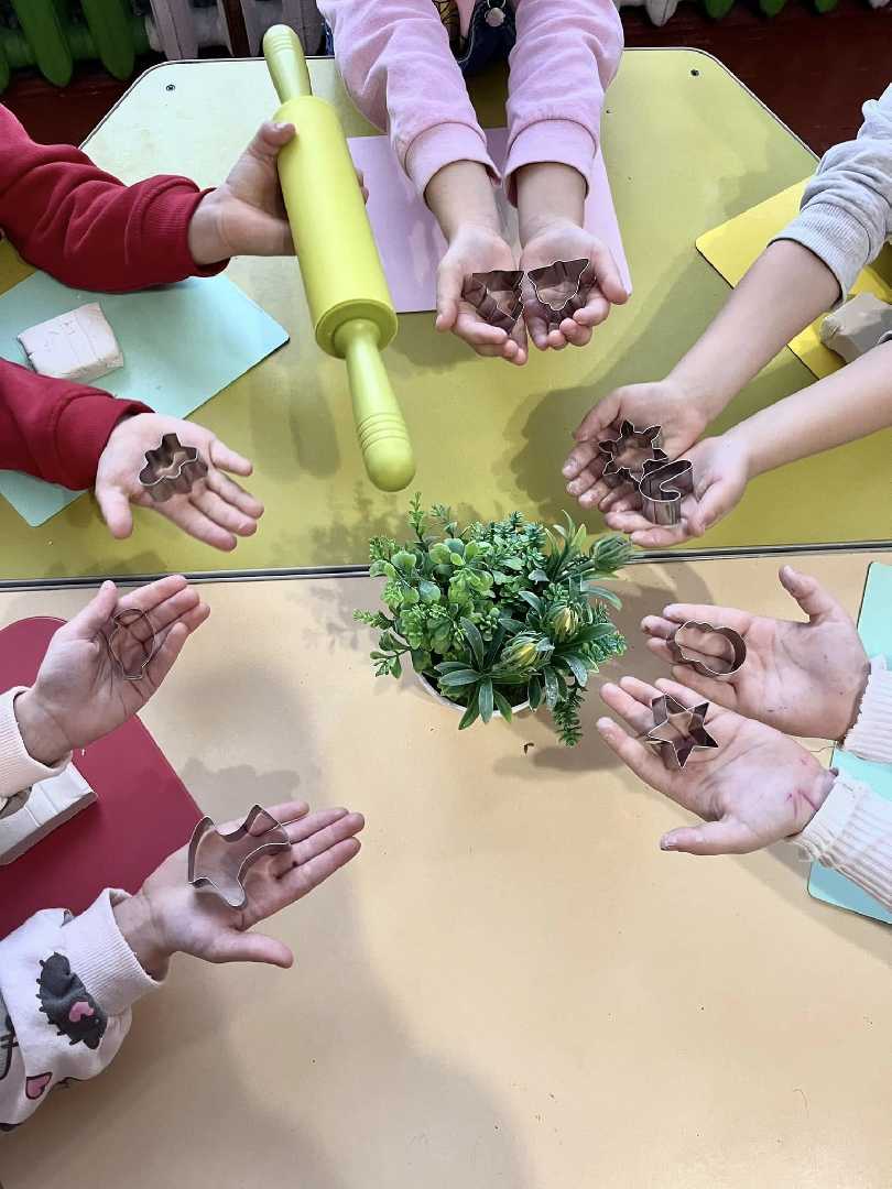 Сьогодні діти з великою радістю та захопленням витискали з глини новорічні іграшки. Маленькі пальчики старанно працювали, перетворюючи шматочки глини на казкові зірочки, ялинки, сніжинки, дзвіночки та інші чарівні прикраси П ...
