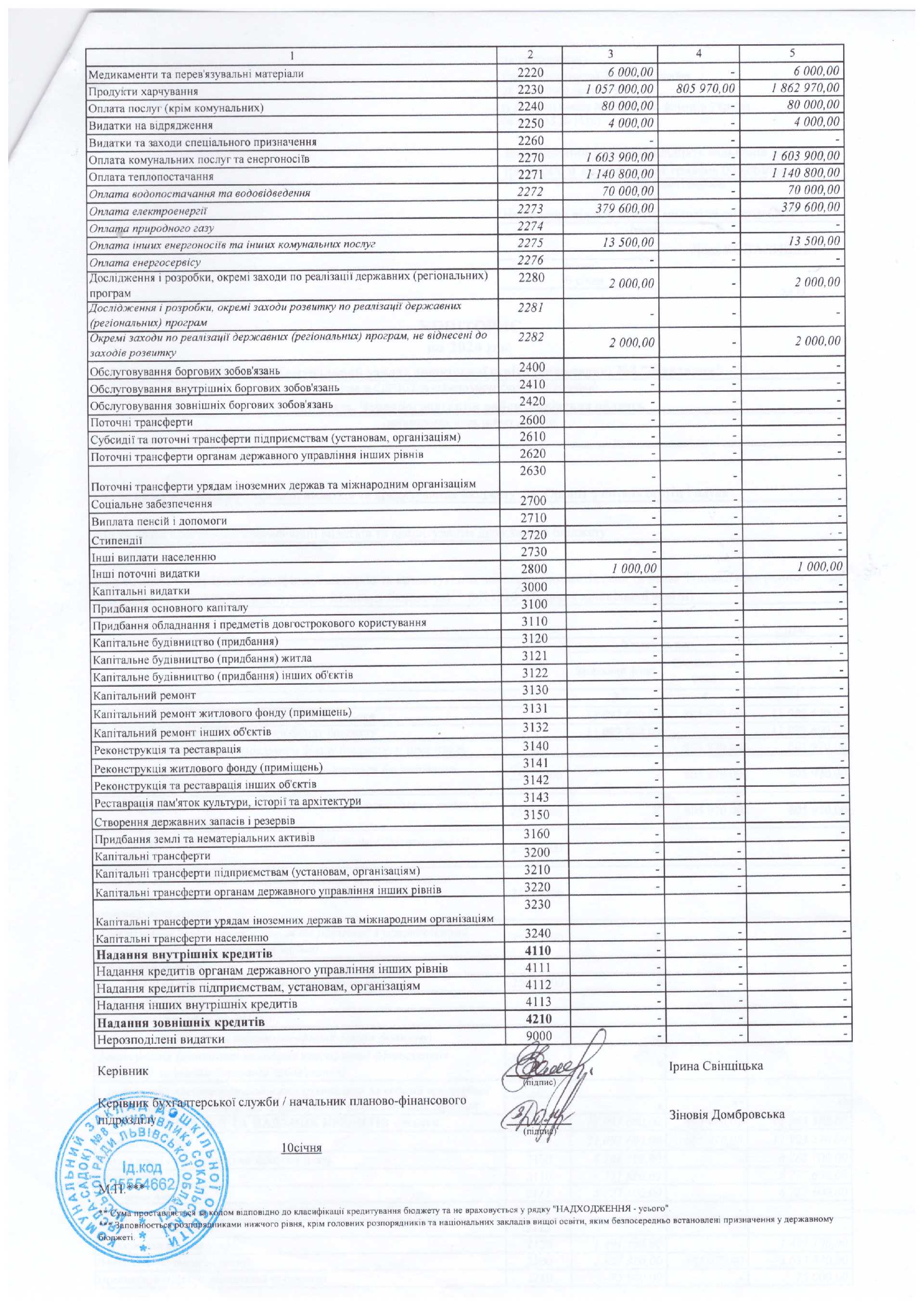 | Продукти харчування | 2230 | 100000,00 | 100000,00 | 54300,00 | 94300,00 | 94300,00 | 134300,00 | 80000,00 | 80000,00 | 86000,00 | 86000,00 | 128200,00 | 1037400,00 | |